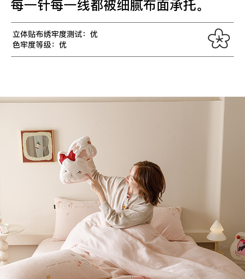 (总)卡姿家纺 2025秋冬德国奶芙绒萌趣贴布绣— 彩虹兔,彩虹兔-粉格,彩虹兔-蓝格,彩虹兔-紫格