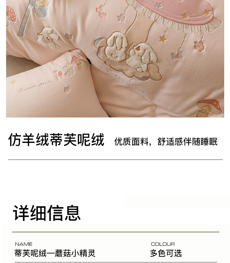 商品名称:(总)卡姿家纺 2025秋冬仿羊绒毛呢触感蒂芙呢绒— 蘑菇小精灵