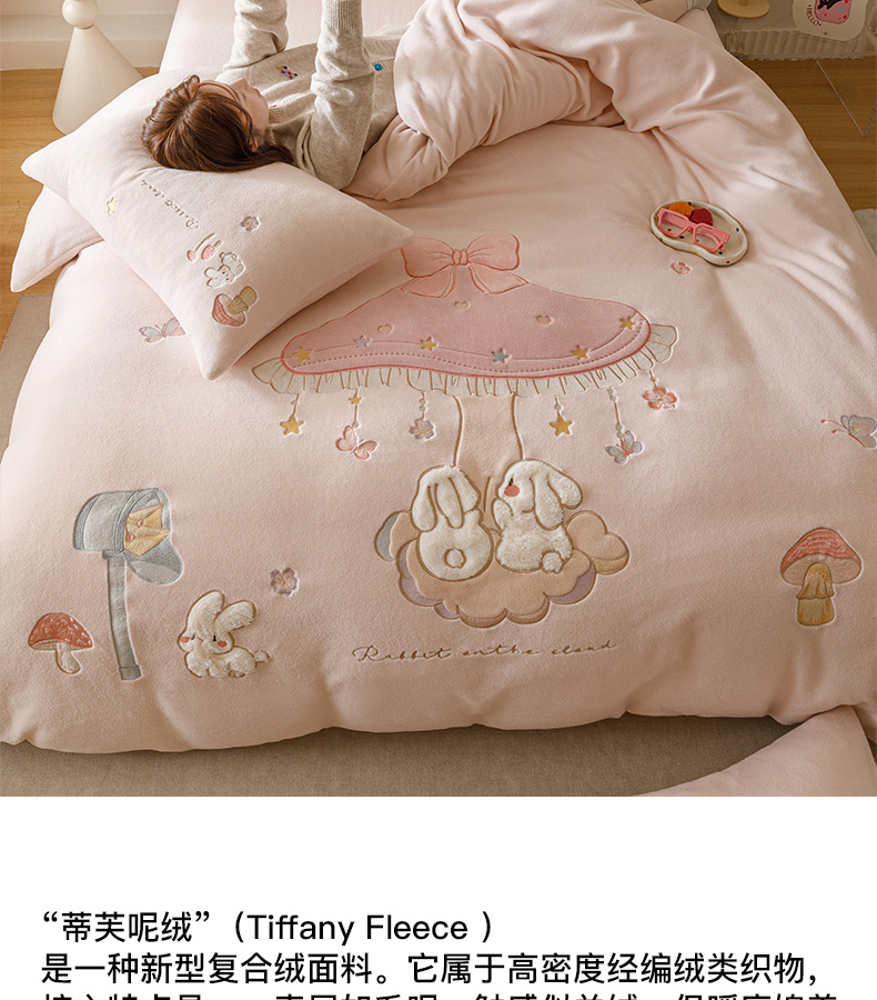(总)卡姿家纺 2025秋冬仿羊绒毛呢触感蒂芙呢绒— 蘑菇小精灵