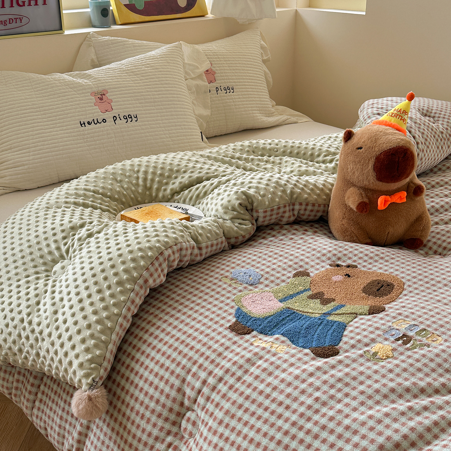 (总)有货 2025新款全棉单层纱毛巾绣豆豆被被子被芯,组合图仅供展示不可下单,花园姑娘,卡比爱心,卡比点点,可爱兔,礼物熊,蘑菇小兔,南瓜熊,森林女孩