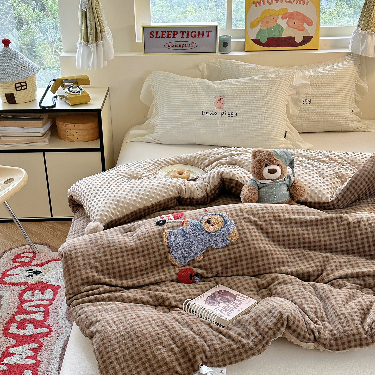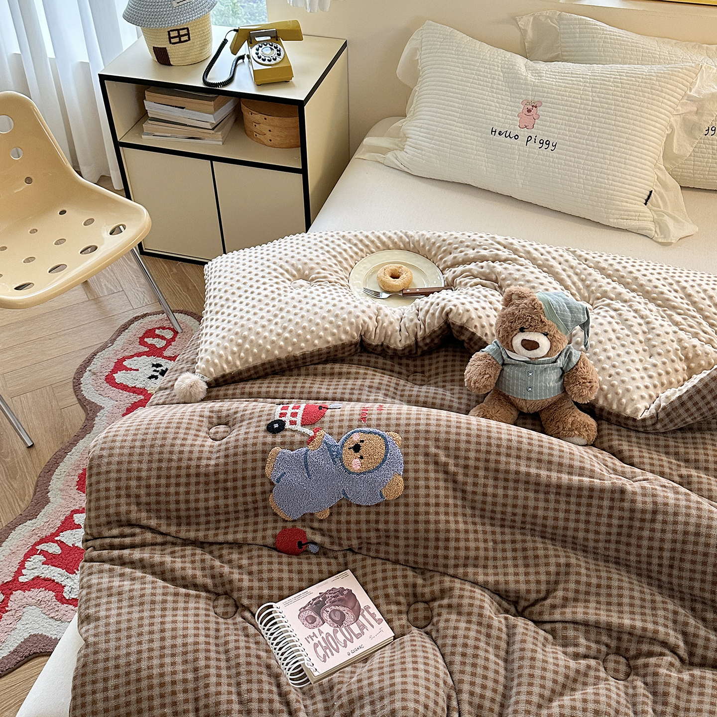 有货 2025新款格调牛奶绒毛巾绣豆豆被系列 格调苹果熊