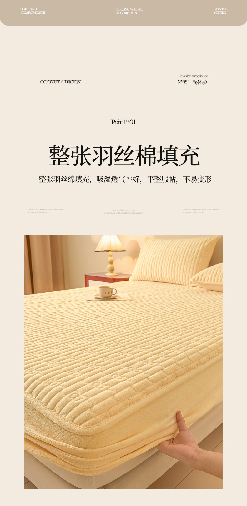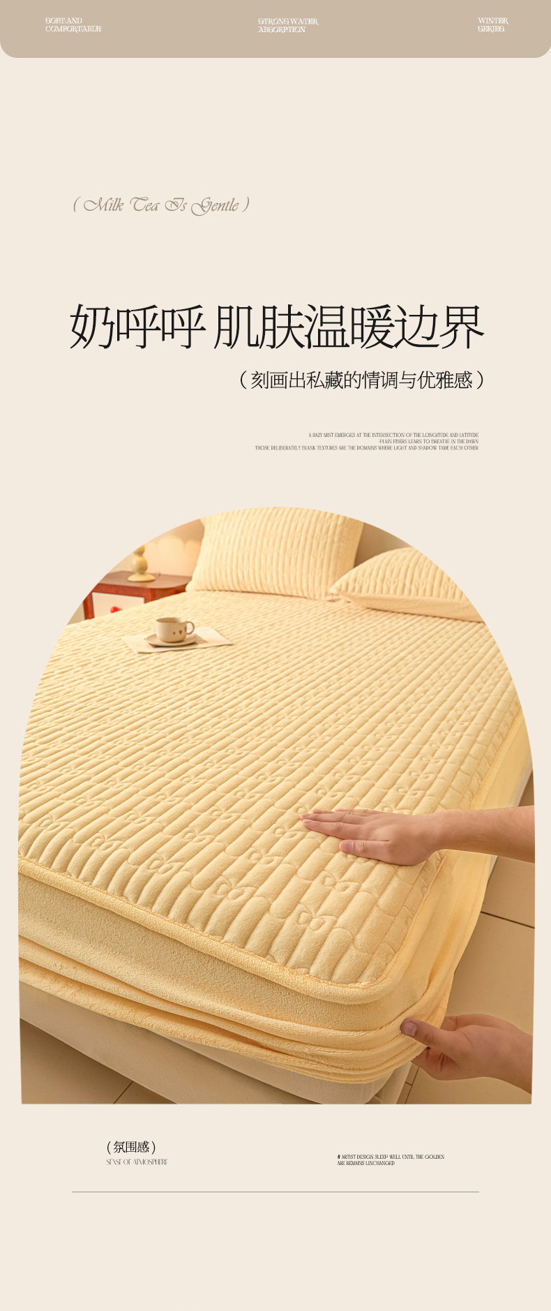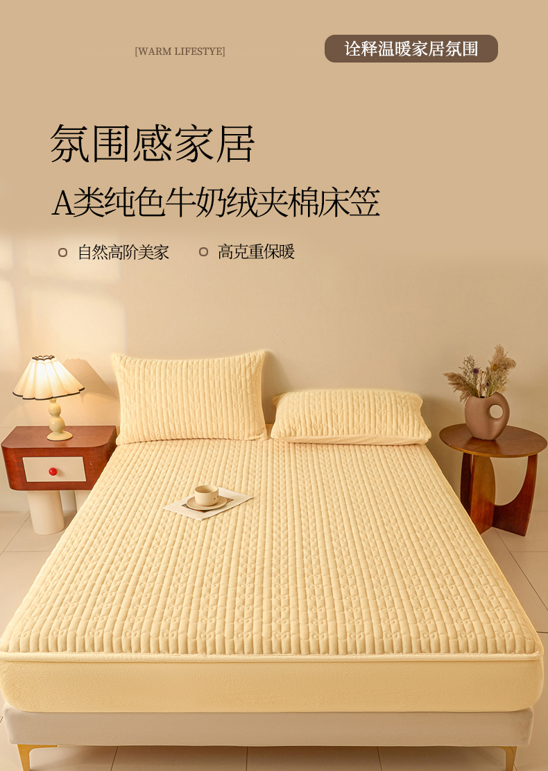 • 91家纺网 家纺一手货源 找家纺 Sweet dreams甜梦 2025新款A类纯色牛奶绒夹棉床笠 米黄