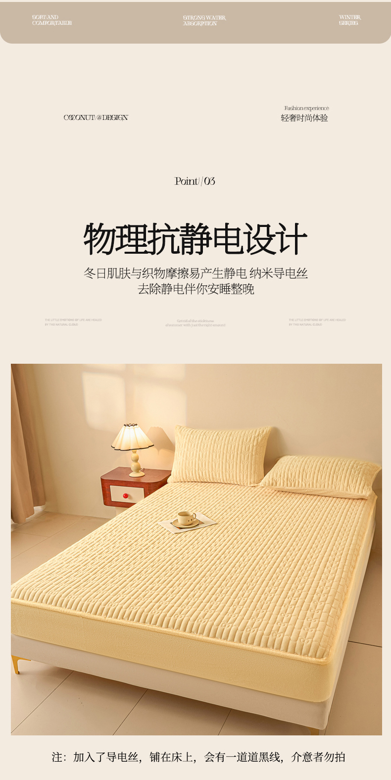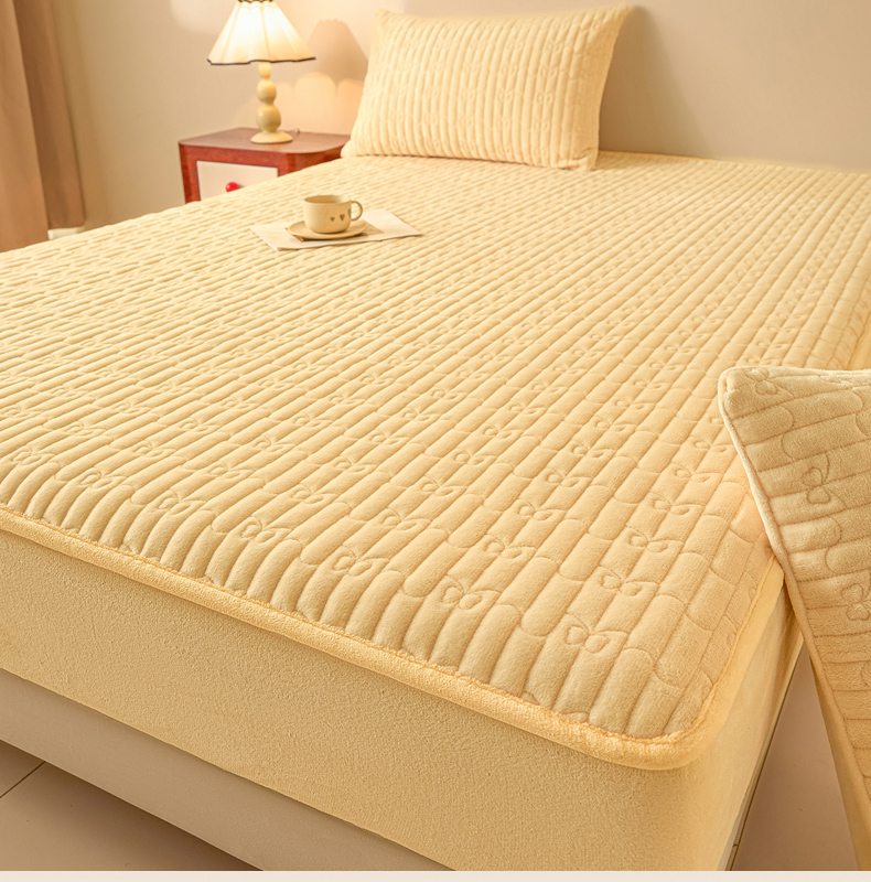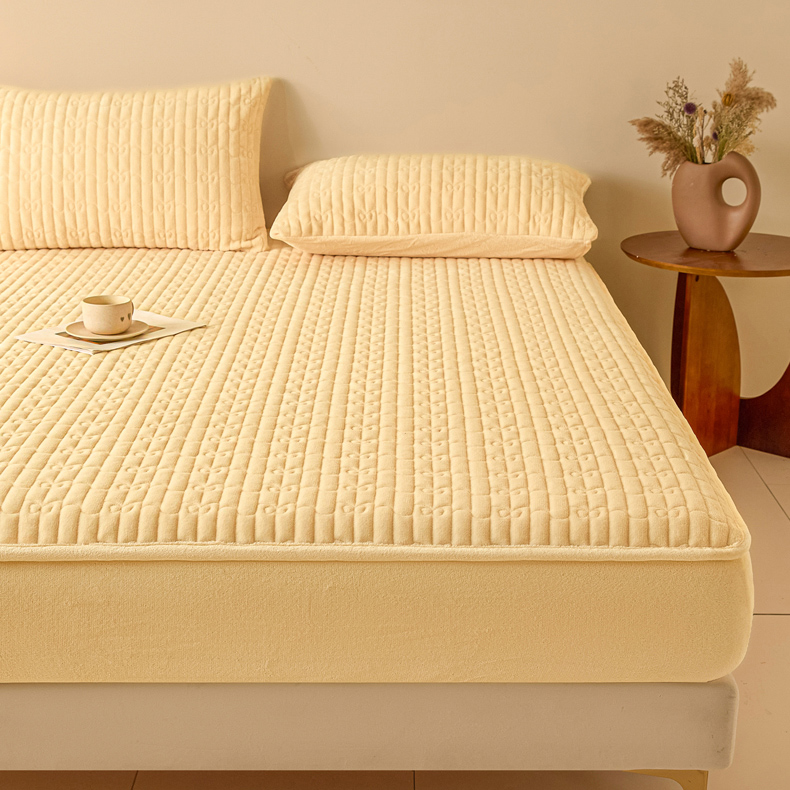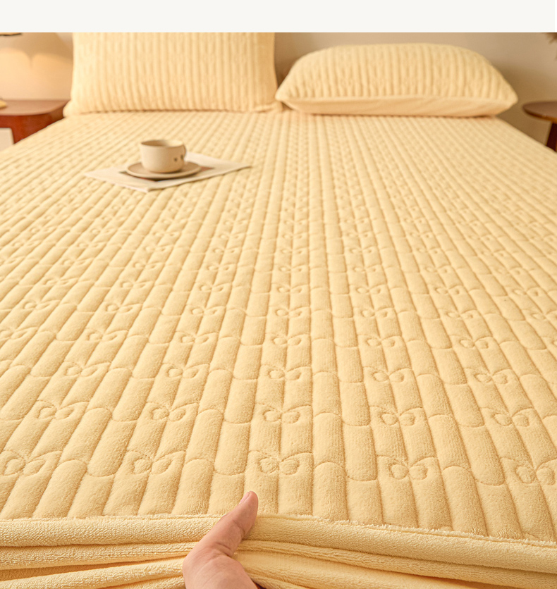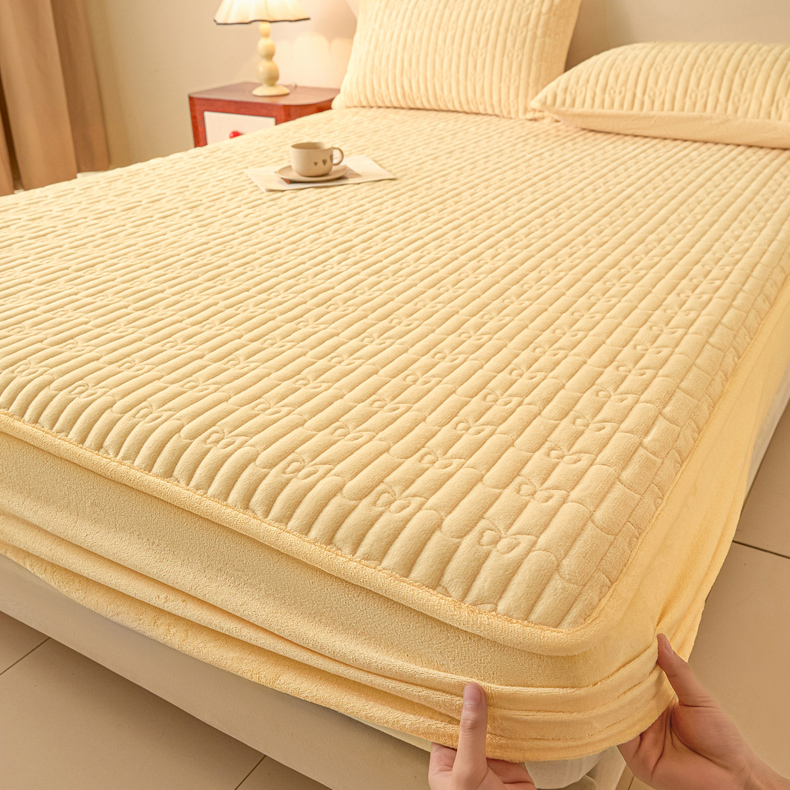 • 91家纺网 家纺一手货源 找家纺 Sweet dreams甜梦 2025新款A类纯色牛奶绒夹棉床笠 米黄