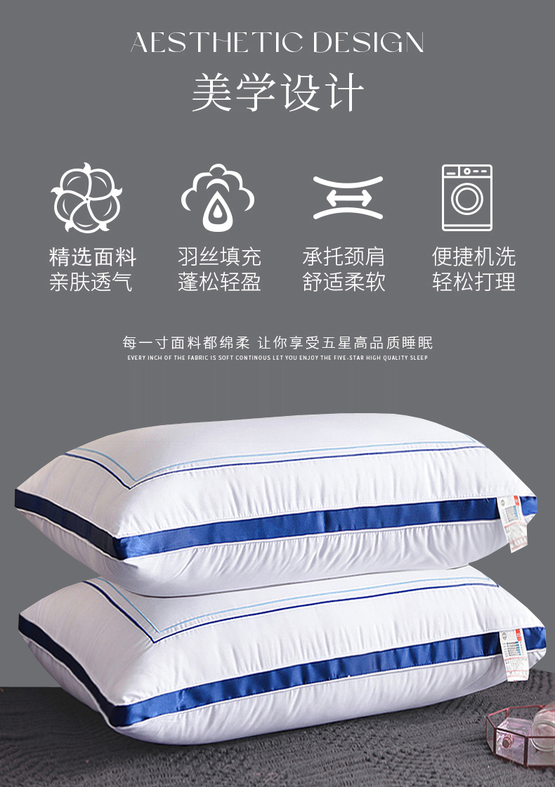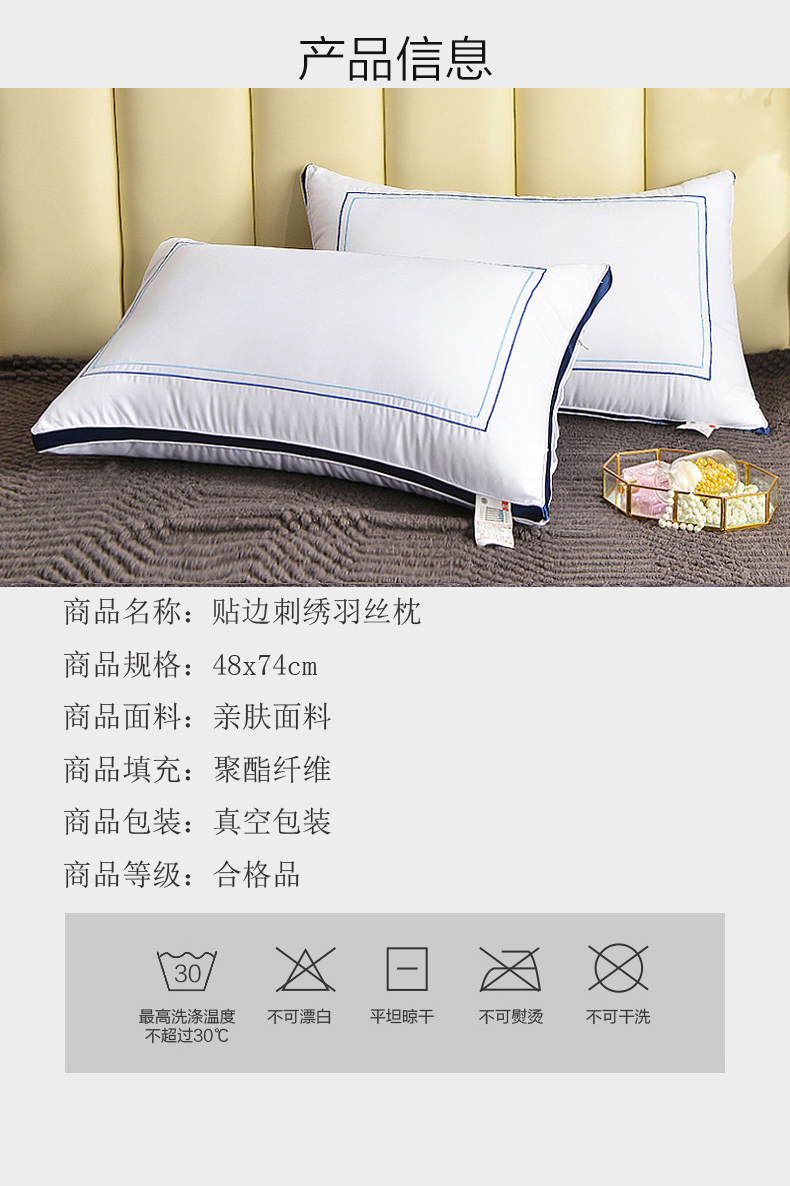 商品名称:(总)新品 兴丝露枕芯 刺绣贴边羽丝枕 酒店枕头 纤维枕