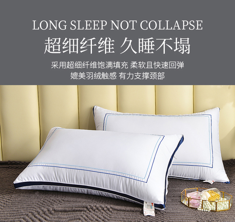 (总)新品 兴丝露枕芯 刺绣贴边羽丝枕 酒店枕头 纤维枕