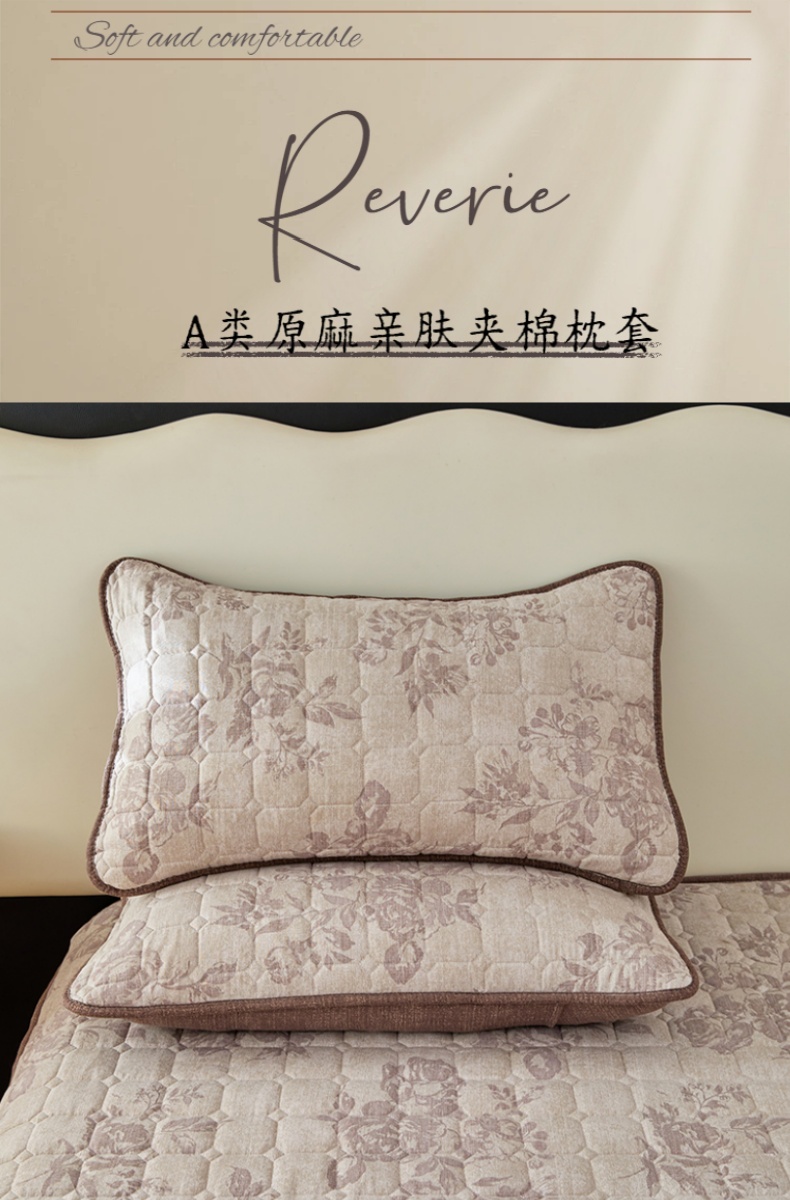 商品名称:圣比熊 2025新款原麻夹棉枕套加厚枕套宿舍单人枕芯套三层加厚枕头套内胆套 古堡花园-咖