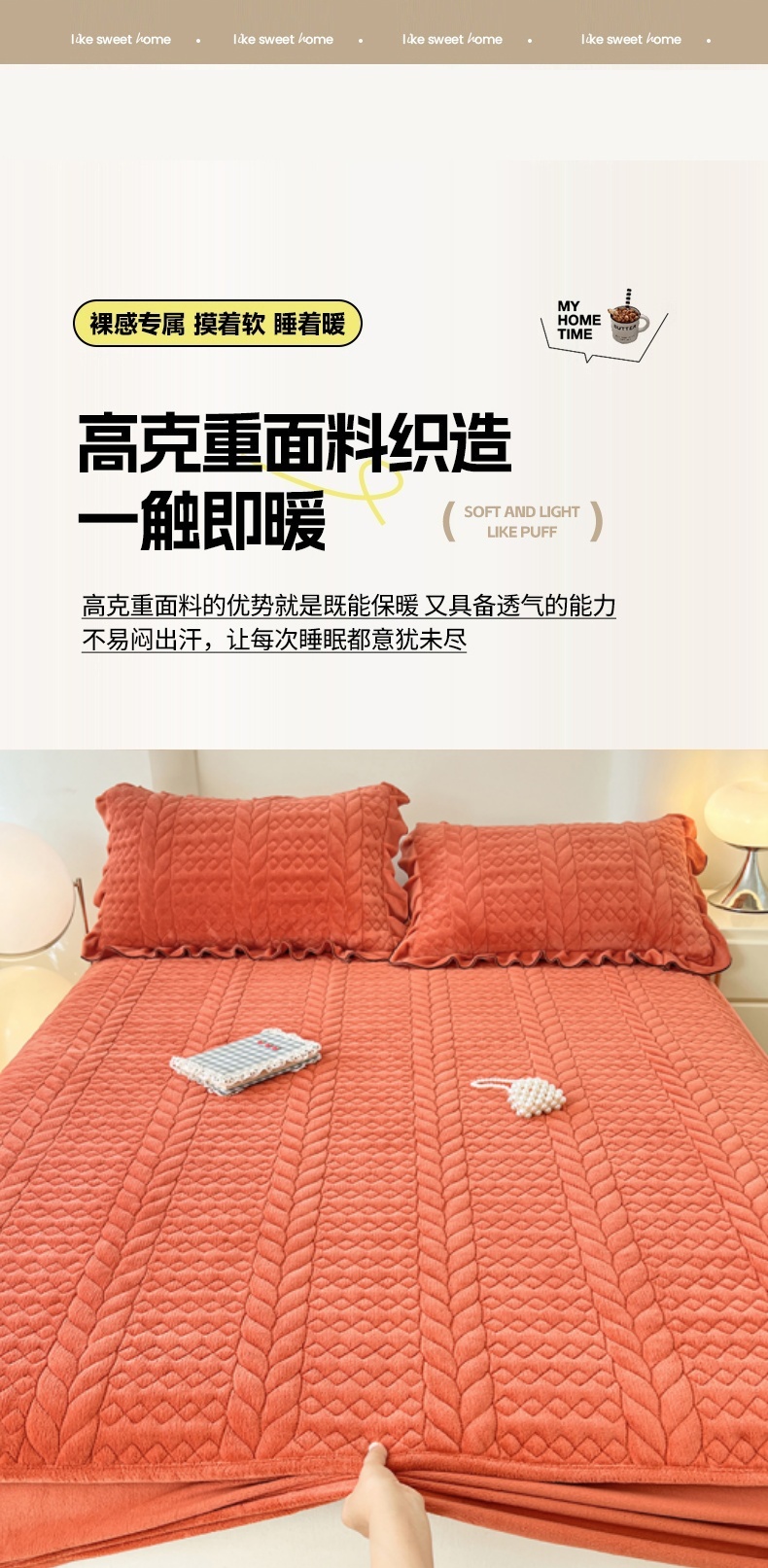 圣比熊 2025新款A类牛奶绒夹棉床笠床单床盖床护垫保护罩三件套花边枕套-轻奢 轻奢款-活力橘