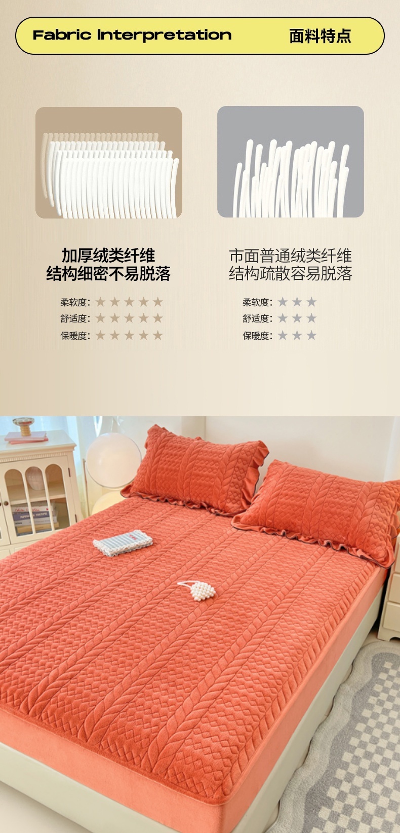 当前位置: 91家纺网 > 商品网购 > 床上用品 > 床笠 > 圣比熊 2025新款A类牛奶绒夹棉床笠床单床盖床护垫保护罩三件套花边枕套-轻奢 轻奢款-活力橘