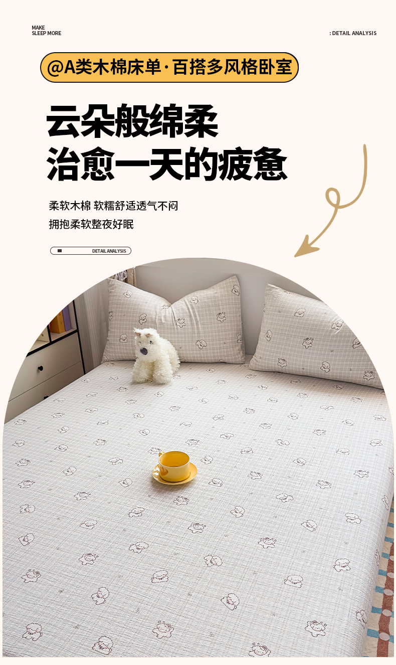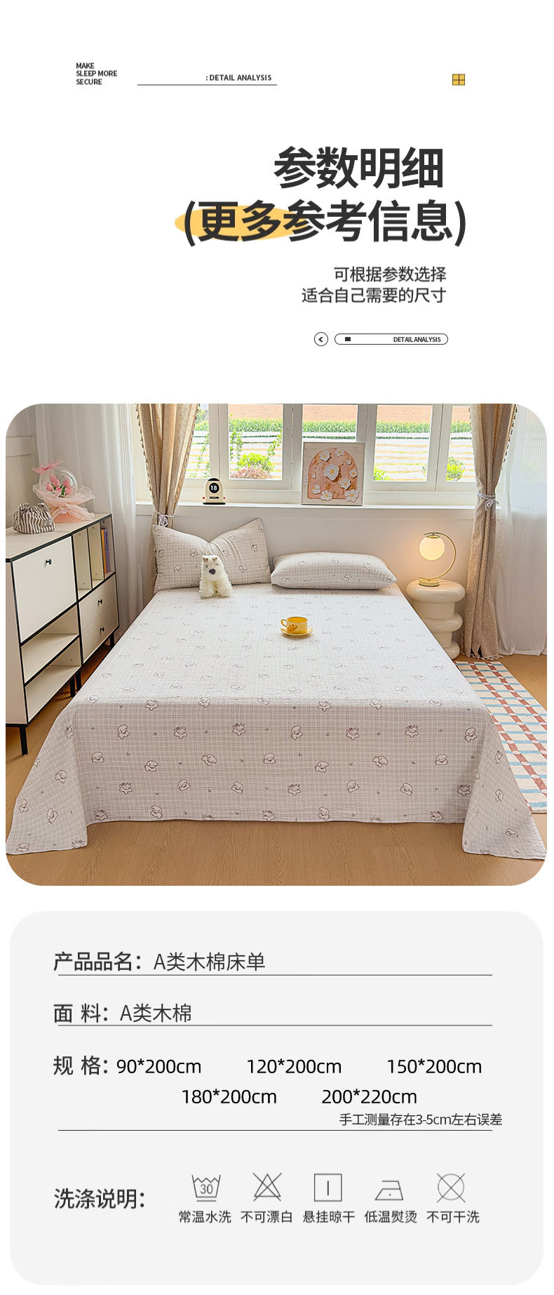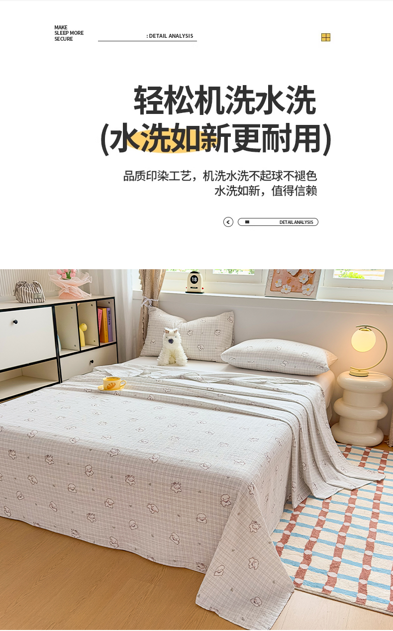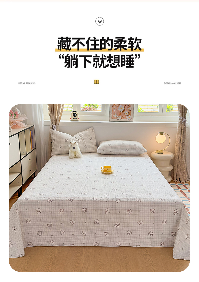 (总)麦乐迪 2025新款A类云感双层纱印花床单,清欢-兰,薄荷小狗,春日花笺,复古堇花,格趣小狗,海洋日记,浅海花影,棕熊条纹灰,棕熊条纹棕,粉漾花兔,花语白兔,漫花,萌趣乐园,密林,南栀,芊影,青趣萌狗,清欢-咖,汪仔派-咖,汪仔派-紫,殷桃结-咖,殷桃结-绿,悠然-咖,悠然-兰,月野兔-粉,湛蓝萌犬,月野兔-灰