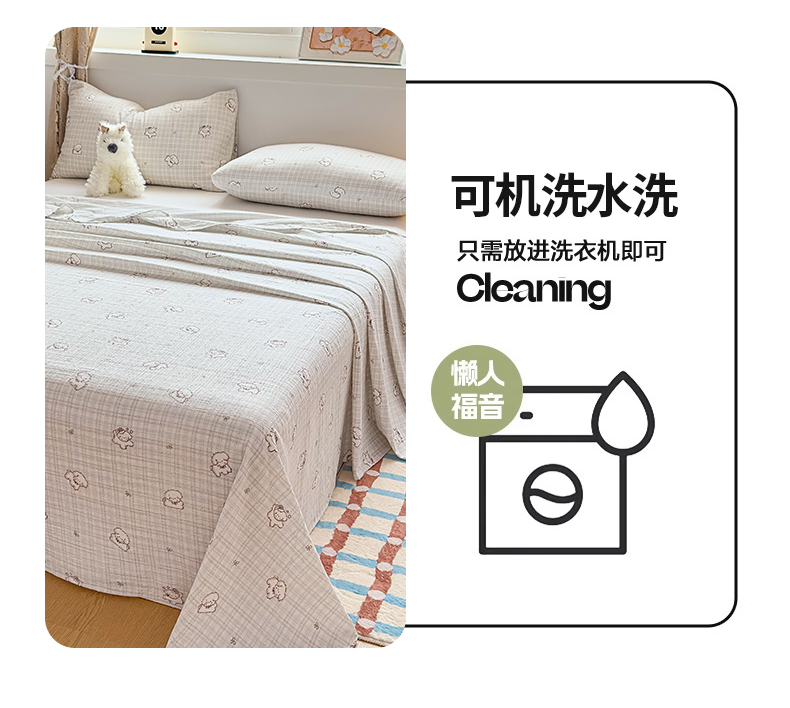 • 91家纺网 家纺一手货源 找家纺 麦乐迪 2025新款A类云感双层纱印花床单 格趣小狗