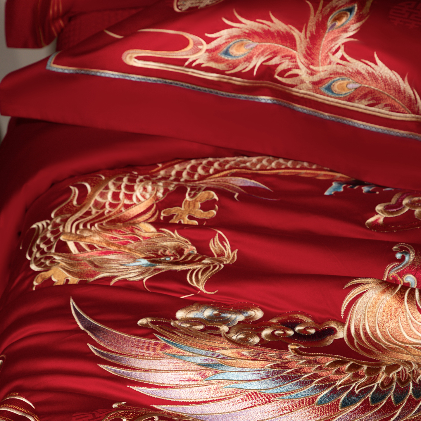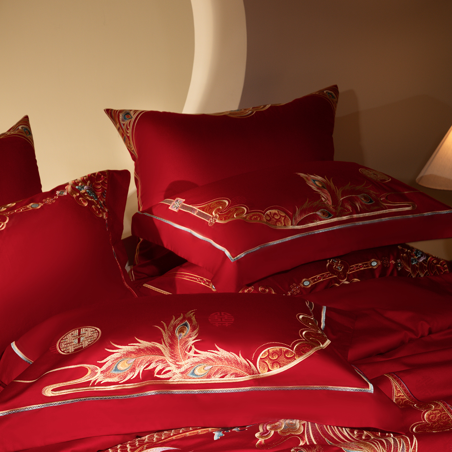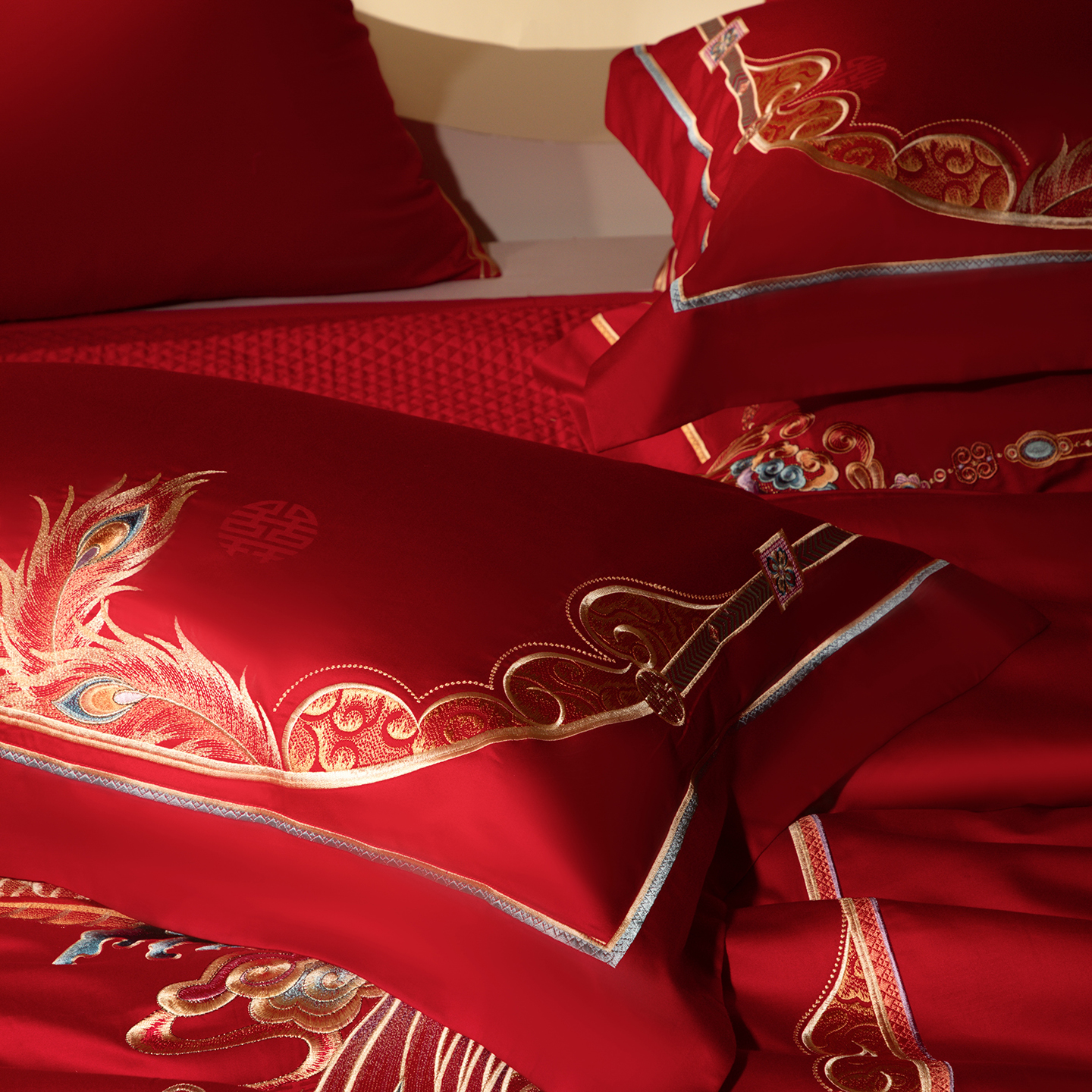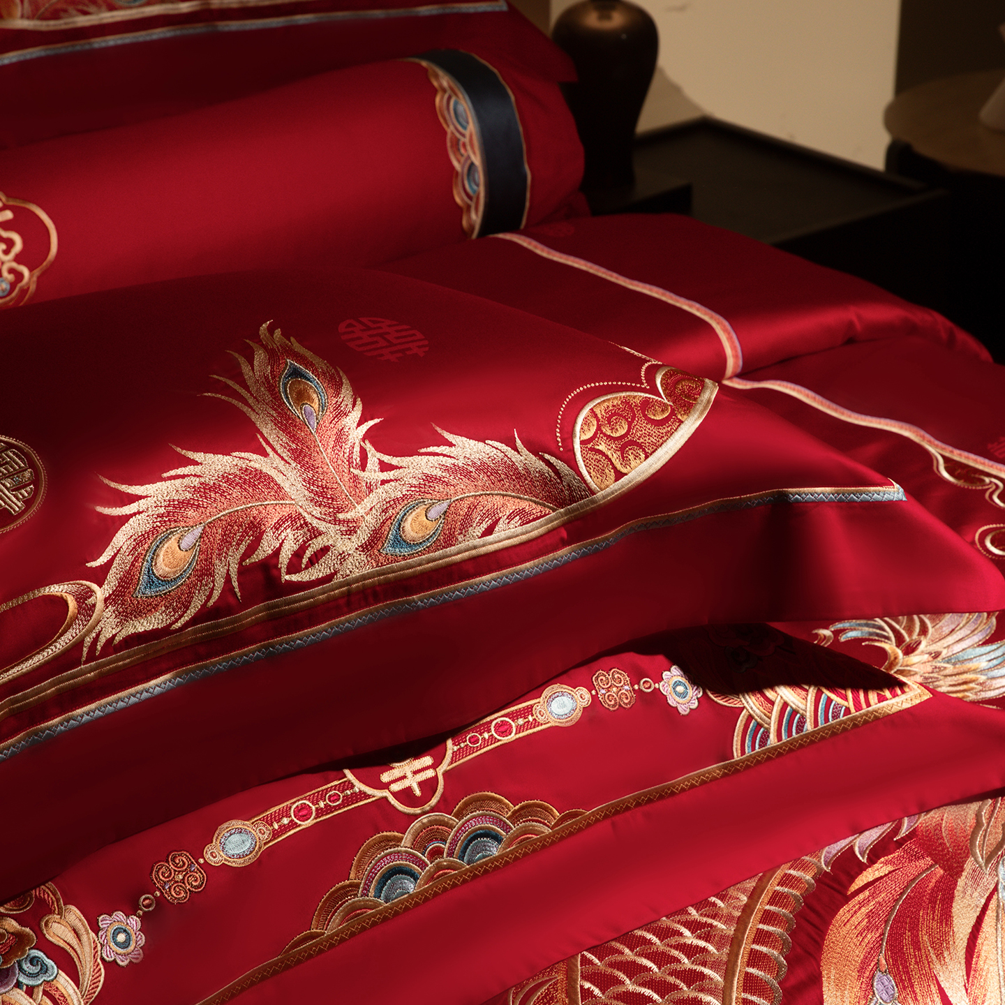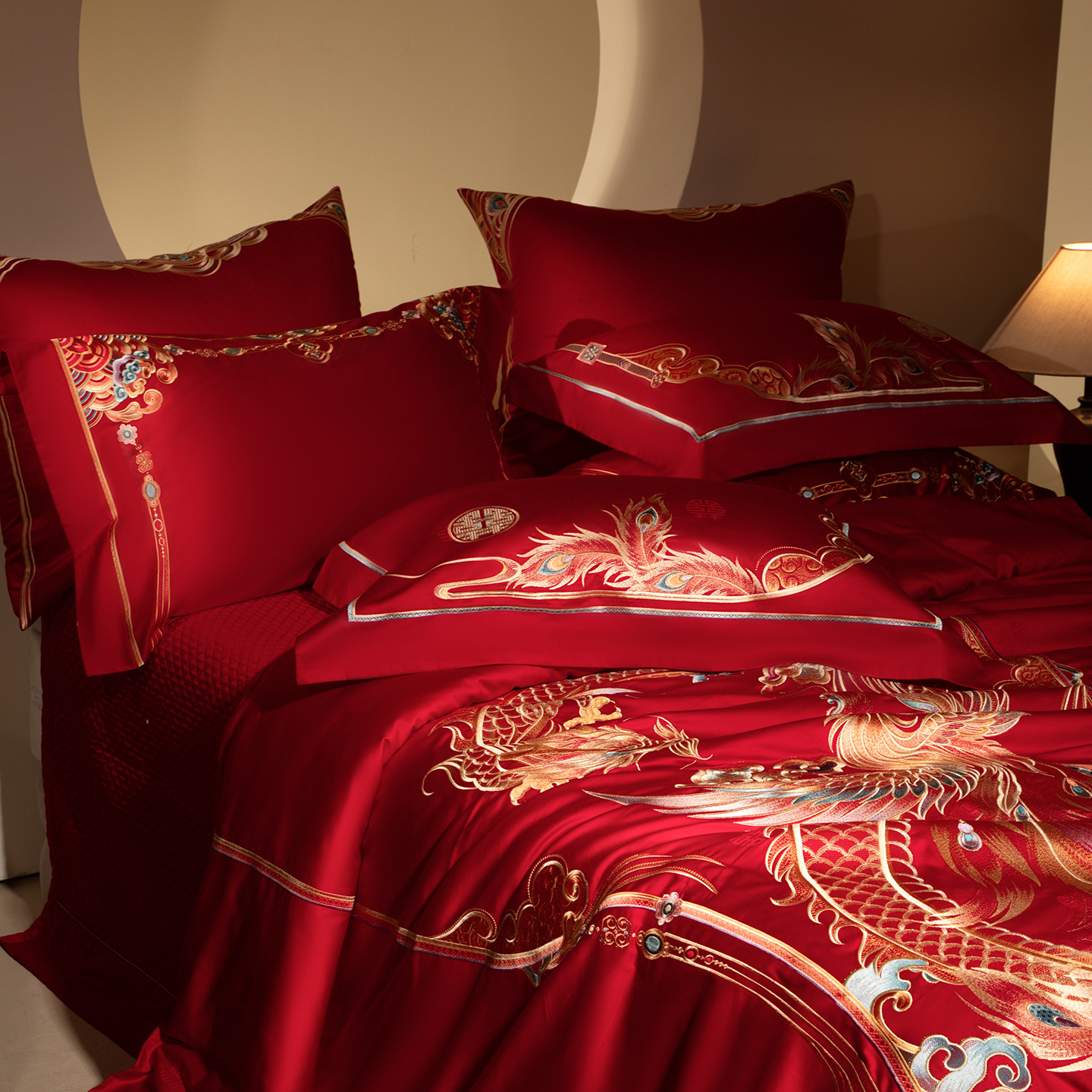 当前位置: 91家纺网 > 商品网购 > 床品套件 > 四件套 > 婚庆四件套 > (总)佳汐蓝家纺 2025新款100支贡缎提花全棉刺绣婚庆四件套-龙凤喜合