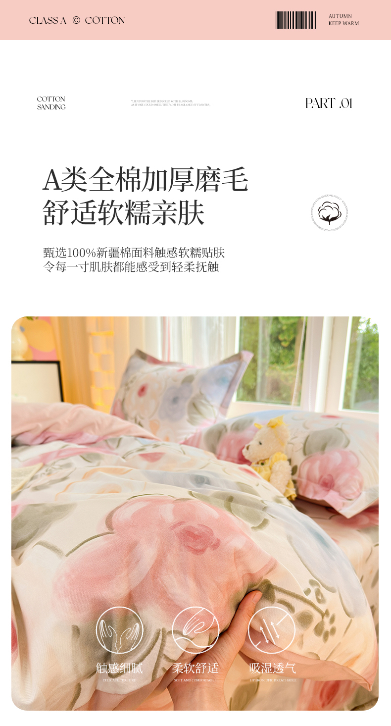 • 91家纺网 家纺一手货源 找家纺 拾物记 2025新款A类全棉纯棉加厚超柔磨毛单被套(提供买家秀质检报告和实验视频) 桃汐-粉