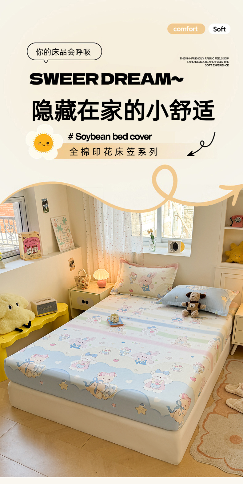 名优家纺 2026新款12868全棉印花床笠 安妮日常