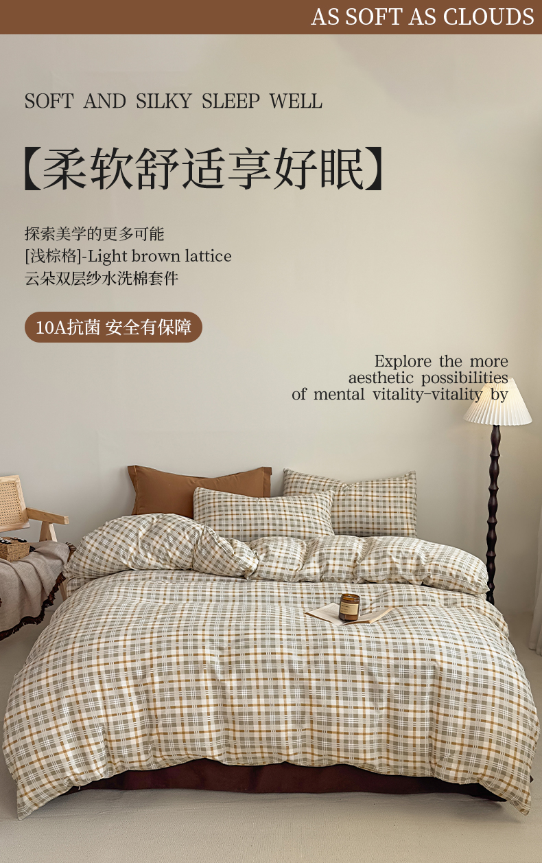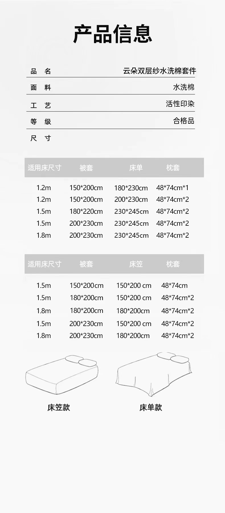 商品名称:(总)麦乐迪 2025新款10A抗菌亲肤云朵双层纱无印风水洗棉三件套四件套(提供买家秀和抗菌检测报告)