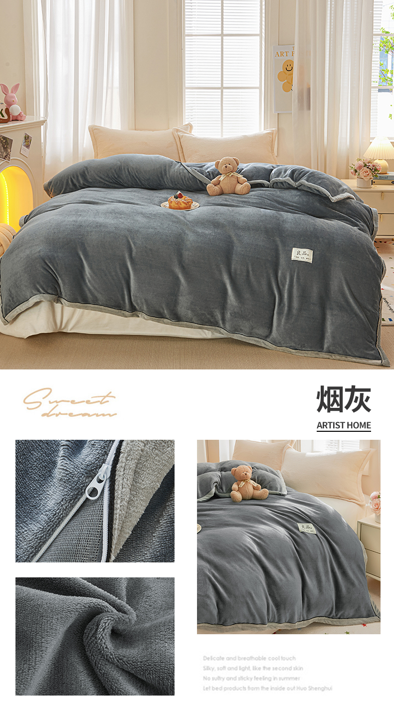 商品名称:天之澜家纺 2025新款多功能牛奶绒单被套盖毯(不含被芯) 烟灰