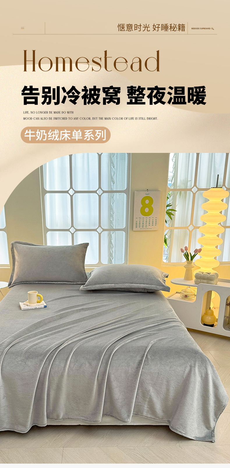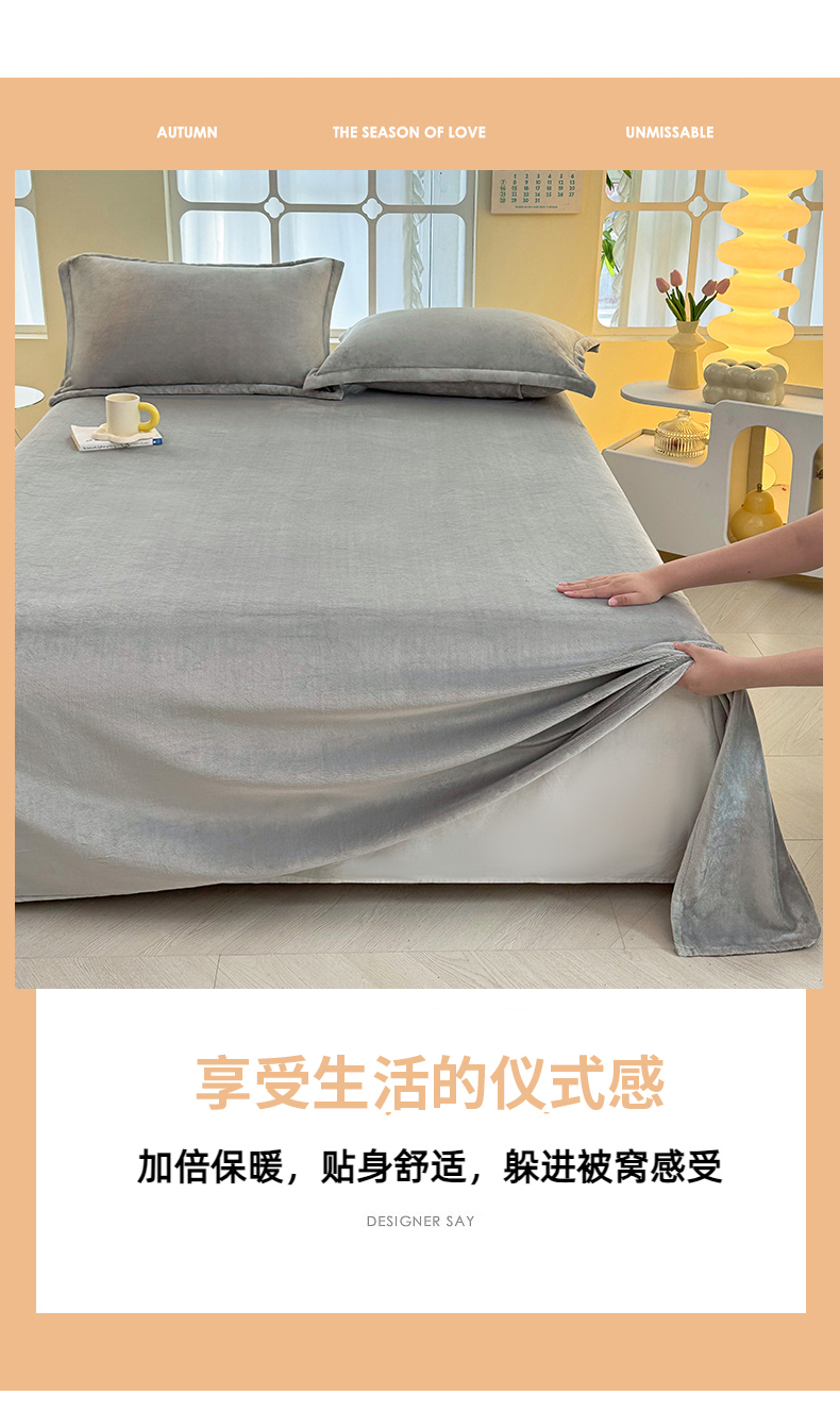 商品名称:悠米悠家 2025新款保暖舒适牛奶绒单品床单 灰色