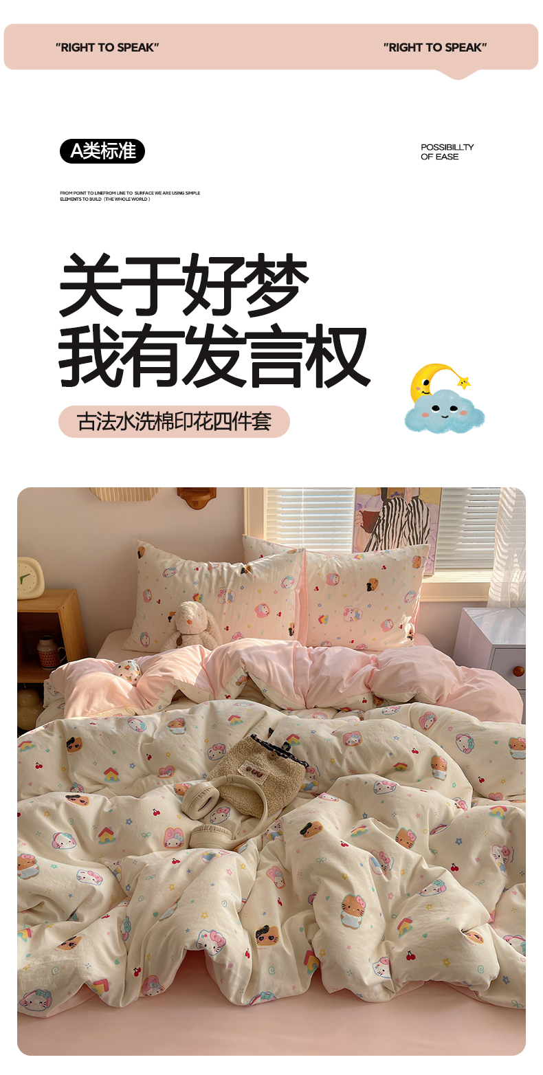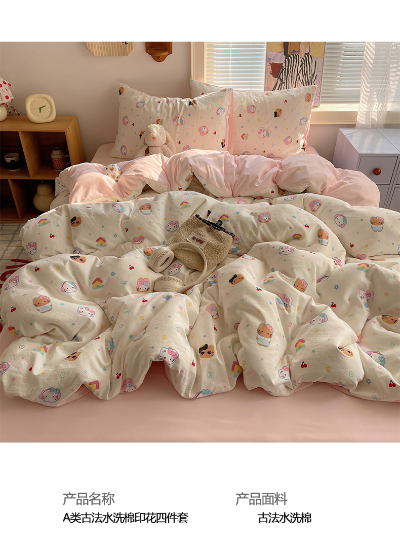 当前位置: 91家纺网 > 商品网购 > 床品套件 > 四件套 > 水洗棉四件套 > 星禾优选 2025新款A类仿棉四件套古法水洗棉小清新印花四件套单被套系列(提供买家秀) 可爱饼干猫