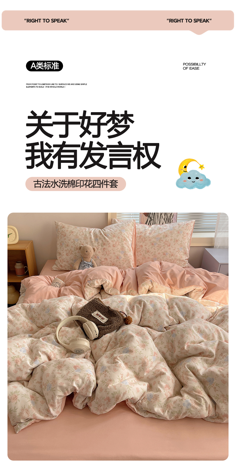 当前位置: 91家纺网 > 商品网购 > 床品套件 > 四件套 > 水洗棉四件套 > 星禾优选 2025新款A类仿棉四件套古法水洗棉小清新印花四件套单被套系列(提供买家秀) 小芙雨