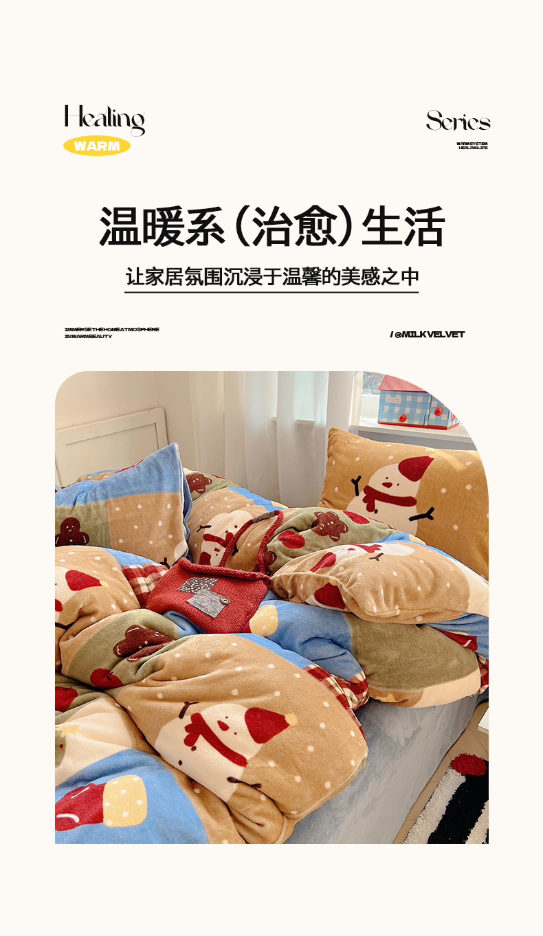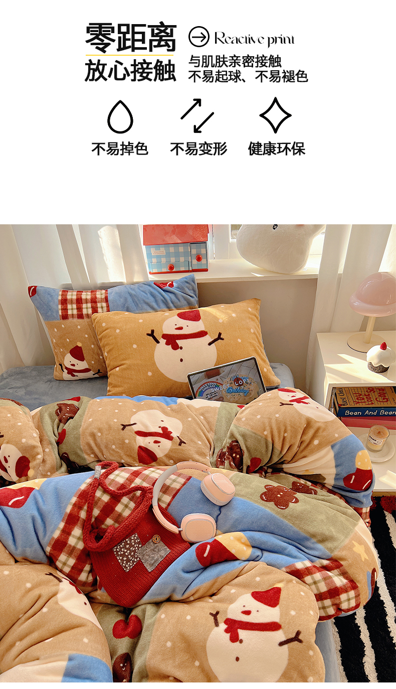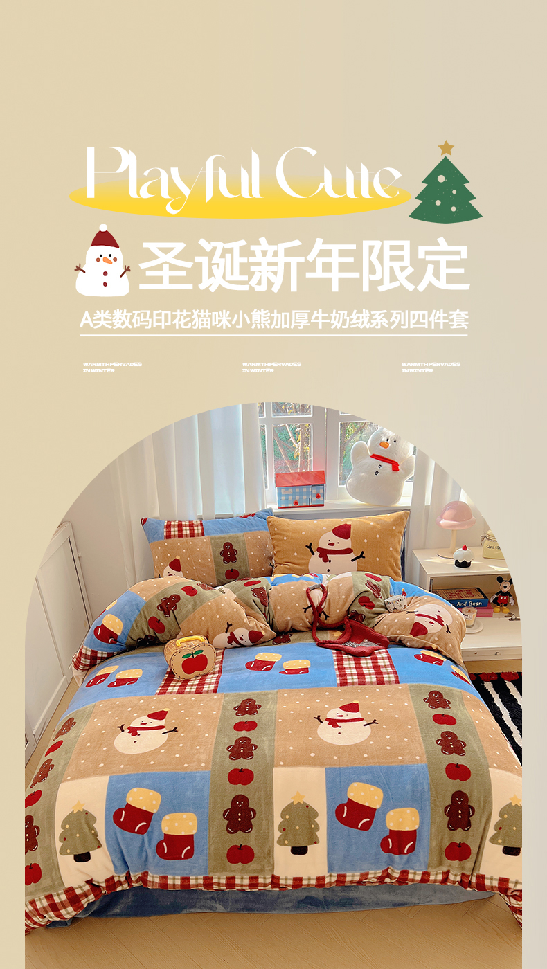 当前位置: 91家纺网 > 商品网购 > 床品套件 > 四件套 > 牛奶绒四件套 > 桃子家居 2025新款A类数码印花圣诞新年限定款猫咪小熊加厚牛奶绒系列四件套详情 绒-雪人奇趣园