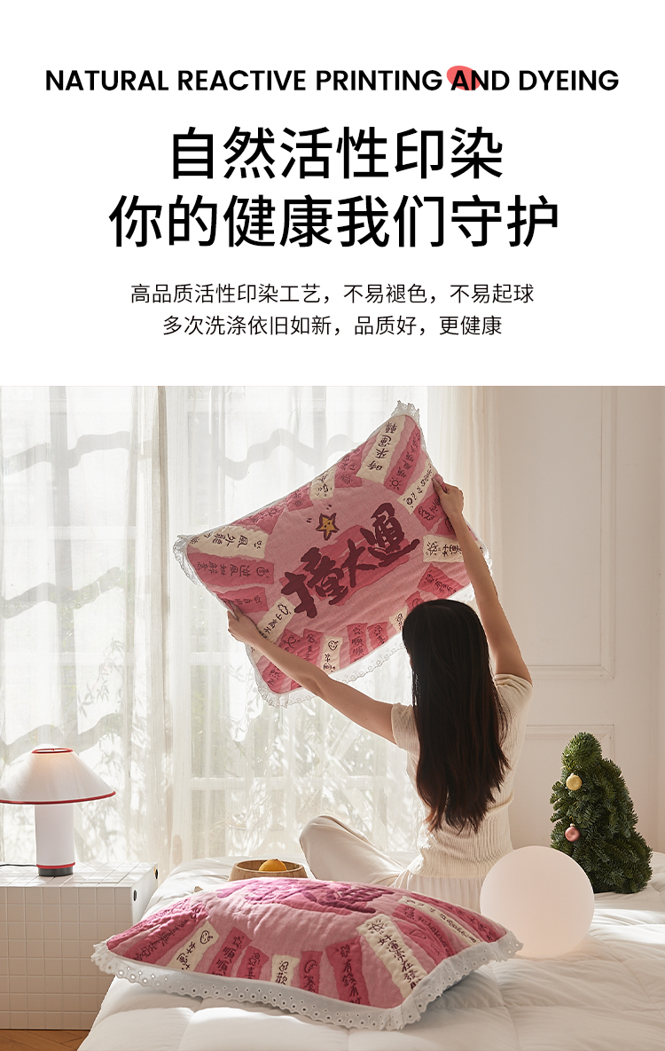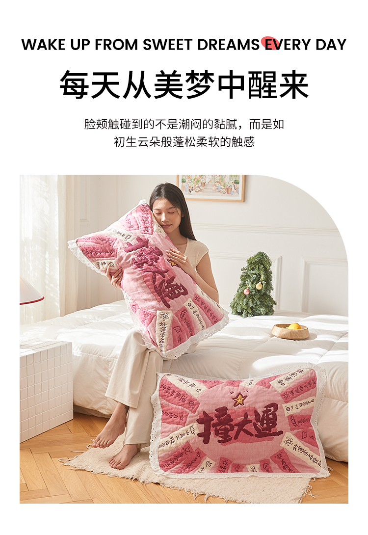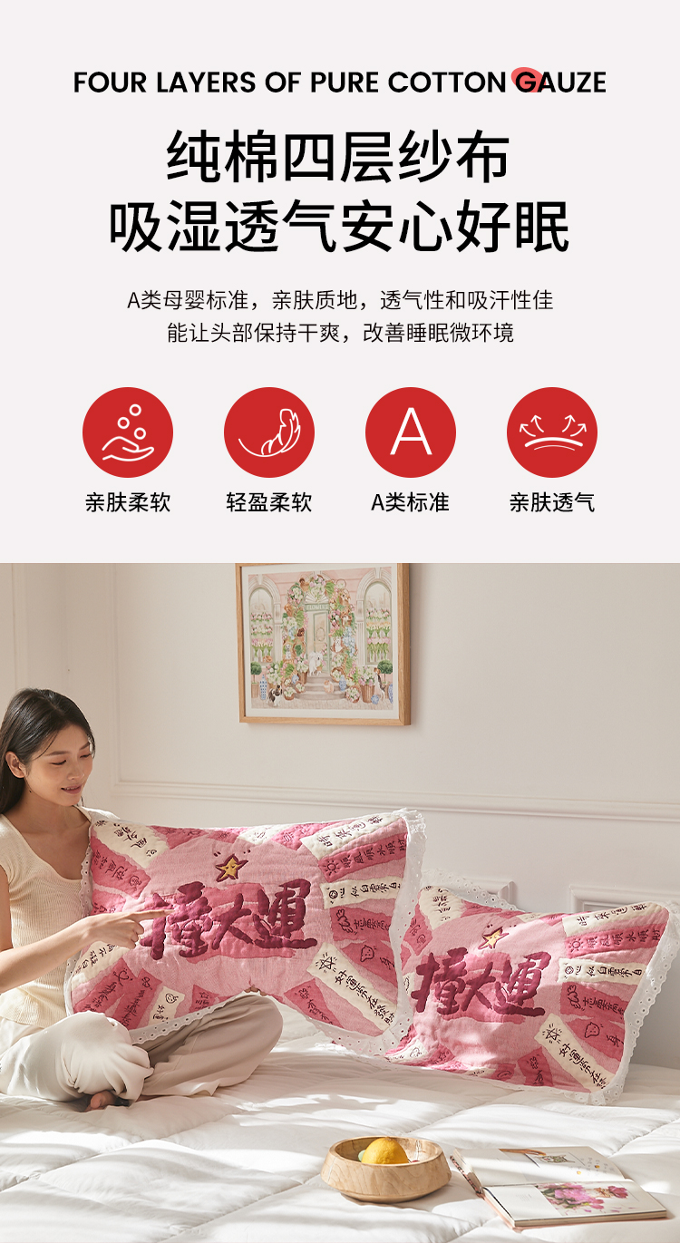 (总)沐瑟家纺 2026新款亲肤舒适全棉四层纱布枕巾-星星和心情系列,心情-粉色,心情-灰蓝,心情-卡其,星星-黄色,星星-灰色,星星-蓝色,星星-紫色,组合图仅做展示不可下单