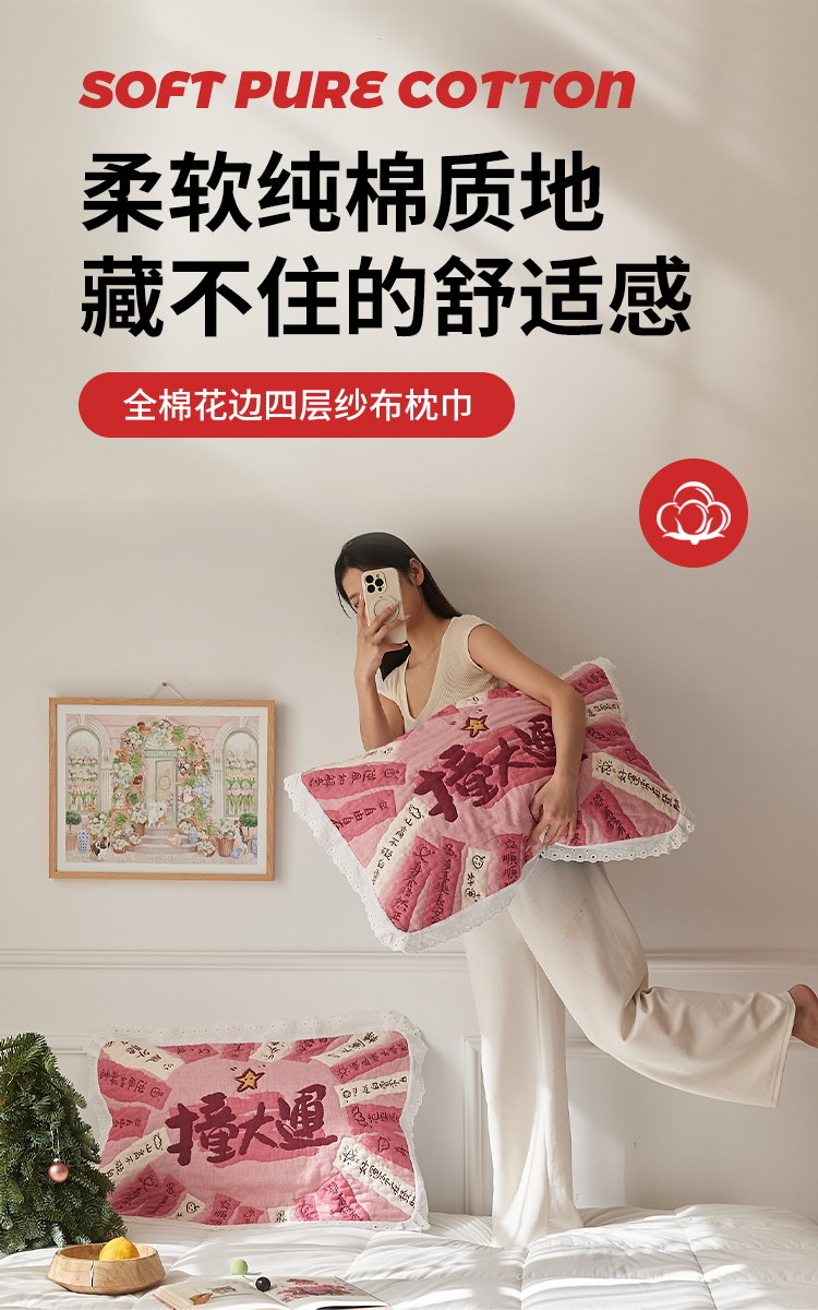 沐瑟家纺 2025新款花边枕巾 顺