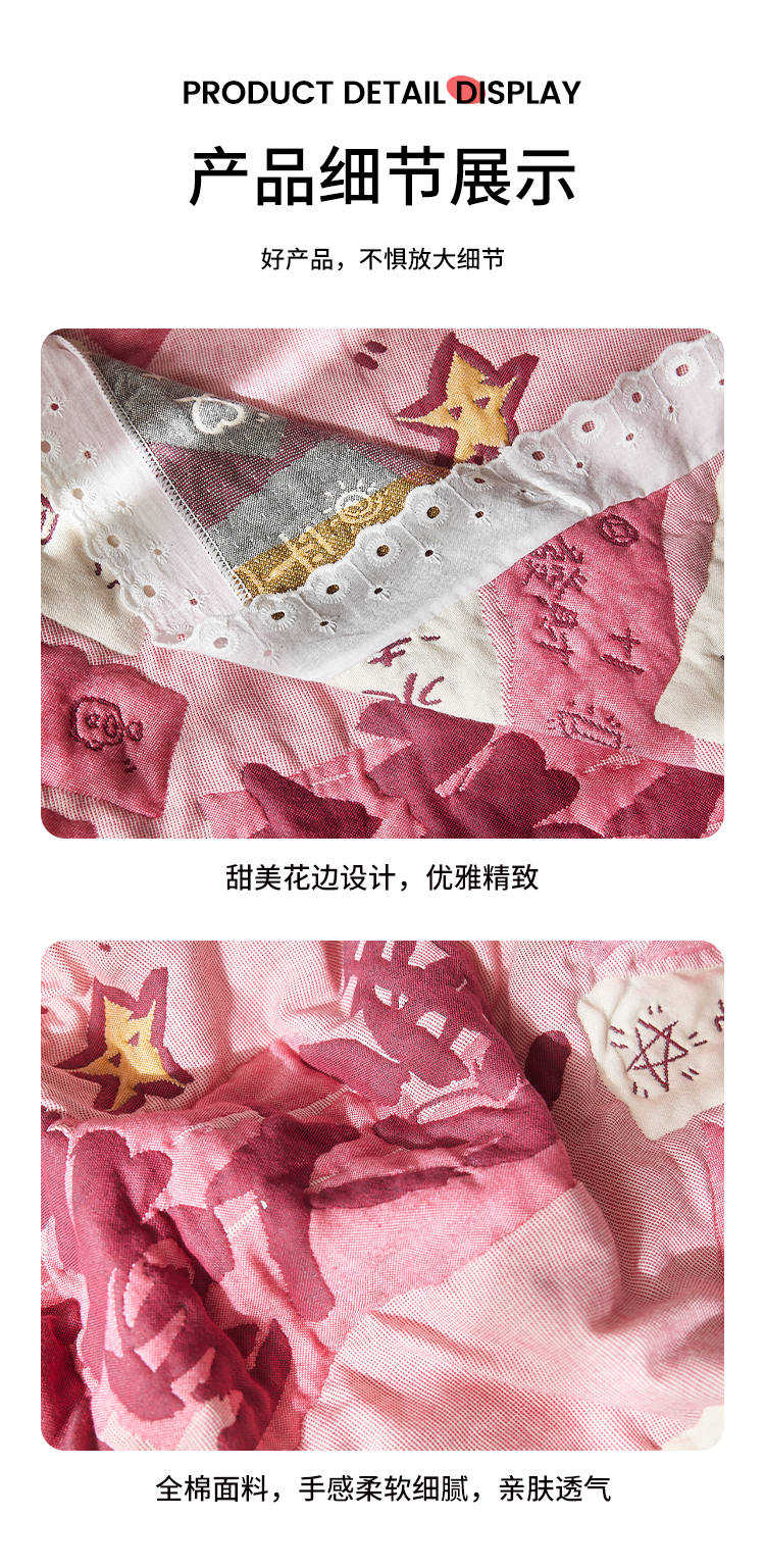(总)沐瑟家纺 2026新款全棉四层纱布床盖-星星和心情系列,心情-粉色,心情-灰蓝,心情-卡其,星星-黄色,星星-灰色,星星-蓝色,星星-紫色,组合