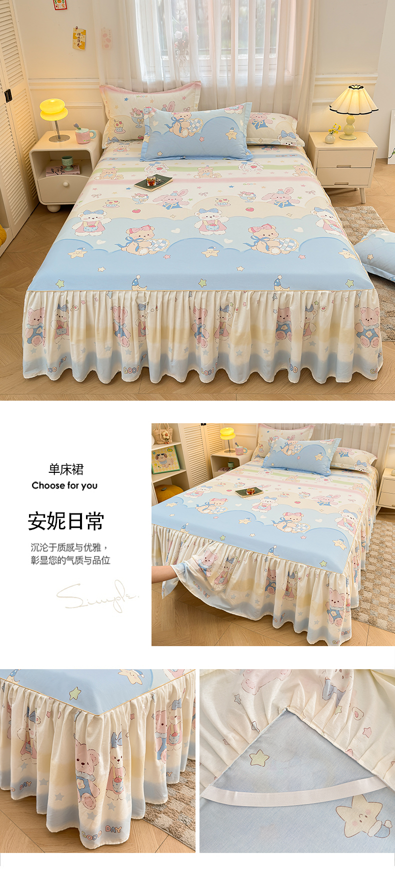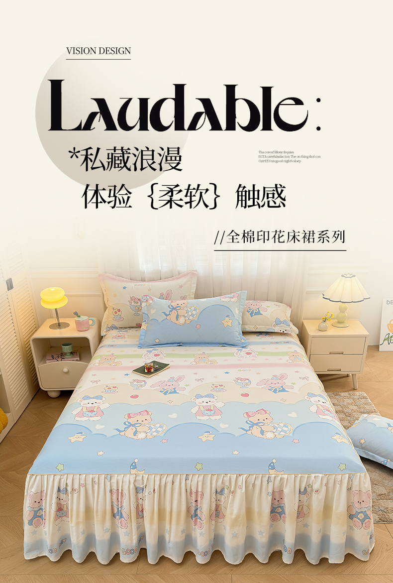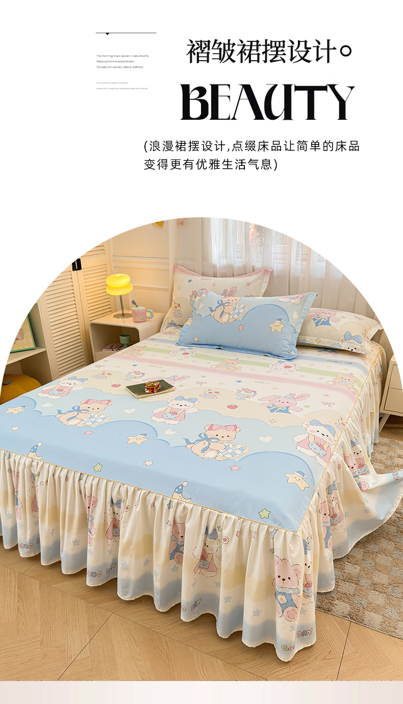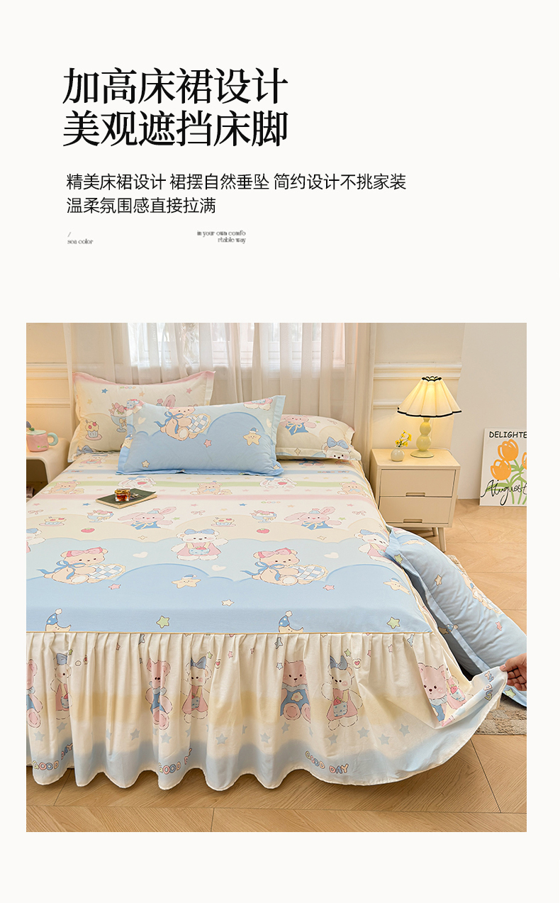 商品名称:(总)名优家纺 2026新款12868全棉小清新印花四件套单品系列-床裙三件套