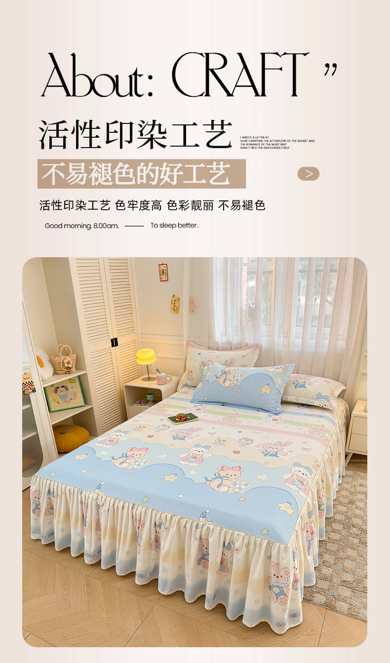 (总)名优家纺 2026新款12868全棉小清新印花四件套单品系列-床裙三件套