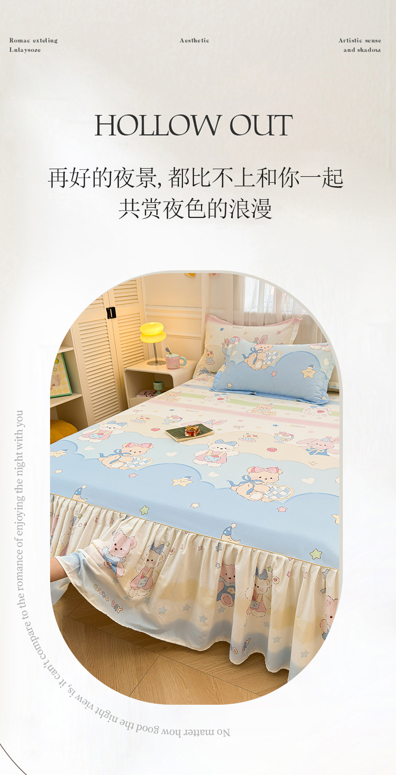 (总)名优家纺 2025新款A类13070全棉纯棉韩版印花床裙,北野,布里克,乘风宇宙,橙心如意,红星小熊,季夏,空谷幽兰,恐龙小霸王,漫春,梦柔-兰,酸甜樱桃,熙悦-黄,小欣喜
