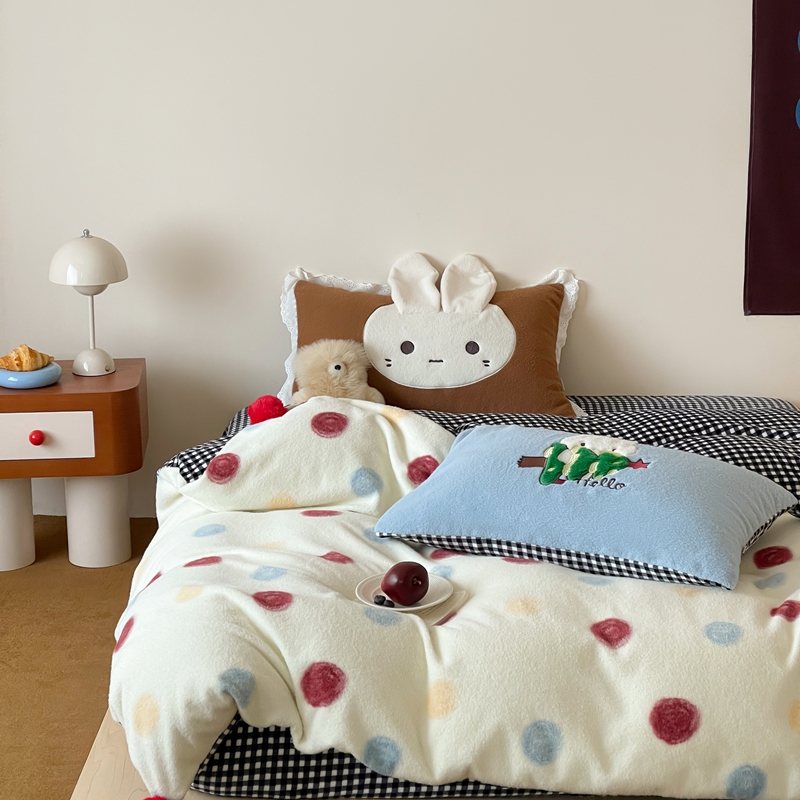 当前位置: 91家纺网 > 商品网购 > 床品套件 > 四件套 > 其它四件套 > 桔子家纺 2025秋冬新款羊毛绒mi兔系列四件套 烤面包