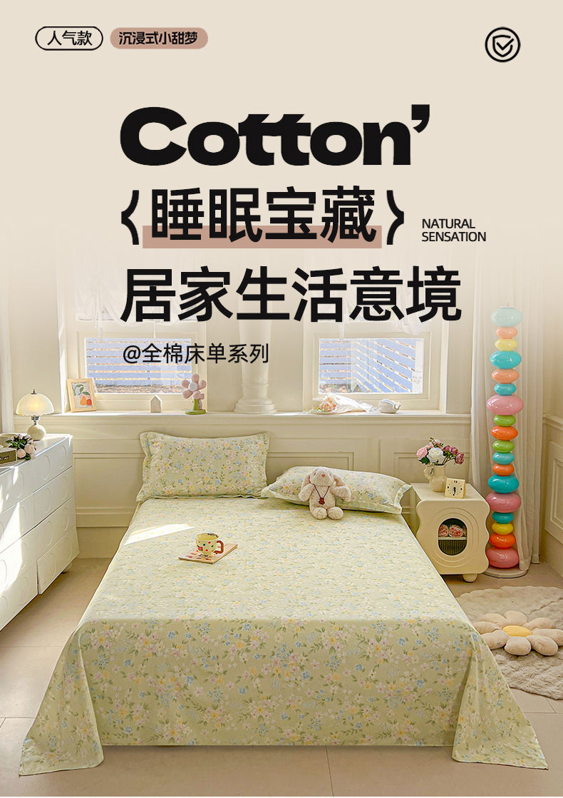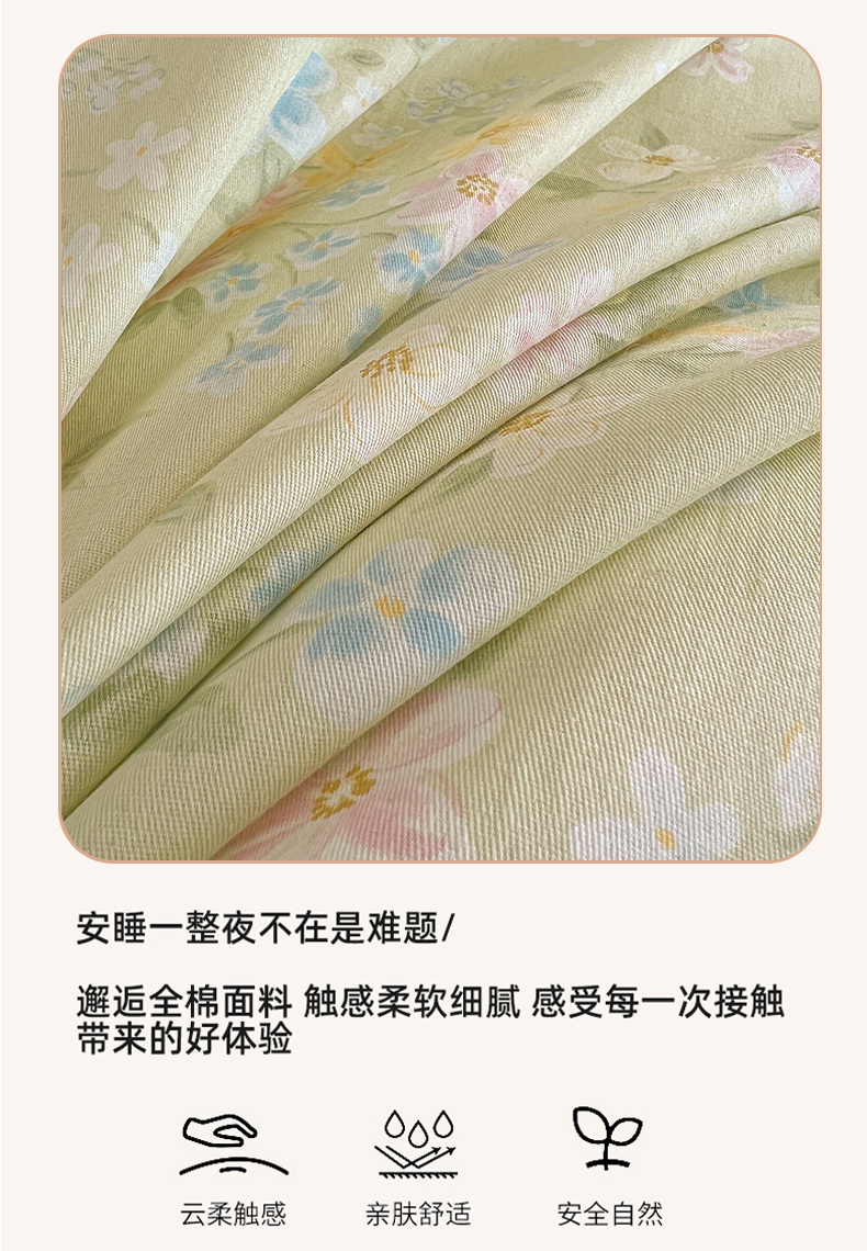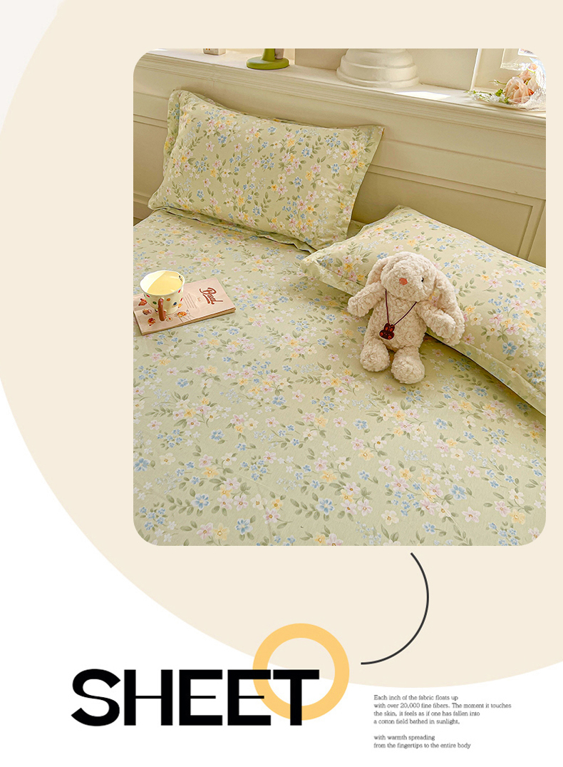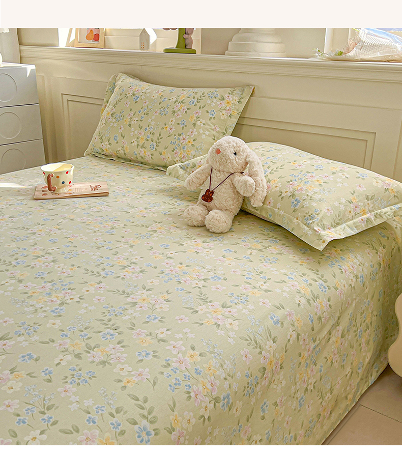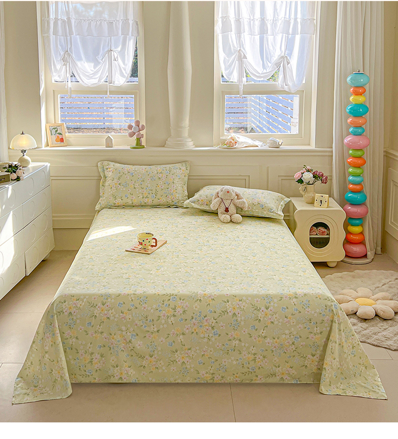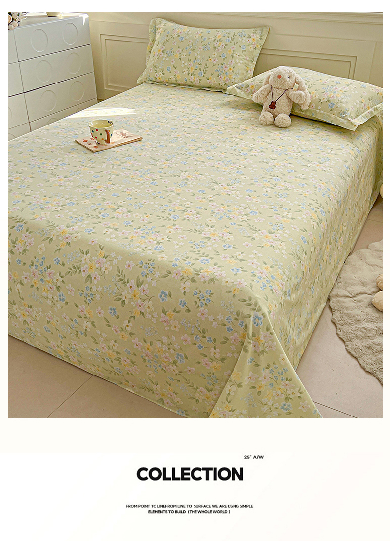 • 91家纺网 家纺一手货源 找家纺 名优家纺 2026新款12868全棉小清新印花四件套单品系列-单床单 徐徐花开