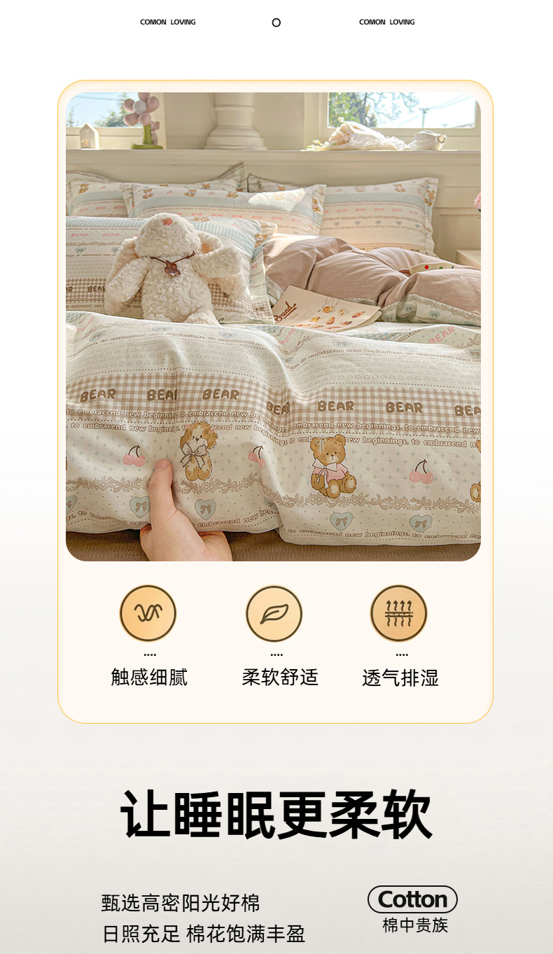 (总)名优家纺 2026新款60S13374高支密全棉印花纯色四件套,宾利兰+浅灰,加仑紫+樱花粉,可可棕+奶黄,莫奈绿+奶黄,奶黄+樱花粉,浅灰,星耀黑+可可棕,樱花粉+浅灰,初简,初见,春日序-紫,洛颜-蓝,念枝,暖冬-桔,软麻-咖,森野花簇-绿,熊派对-米,绣花仙-蓝,絮棠-灰,絮棠-米,与美集,予甜-绿,云璟-紫