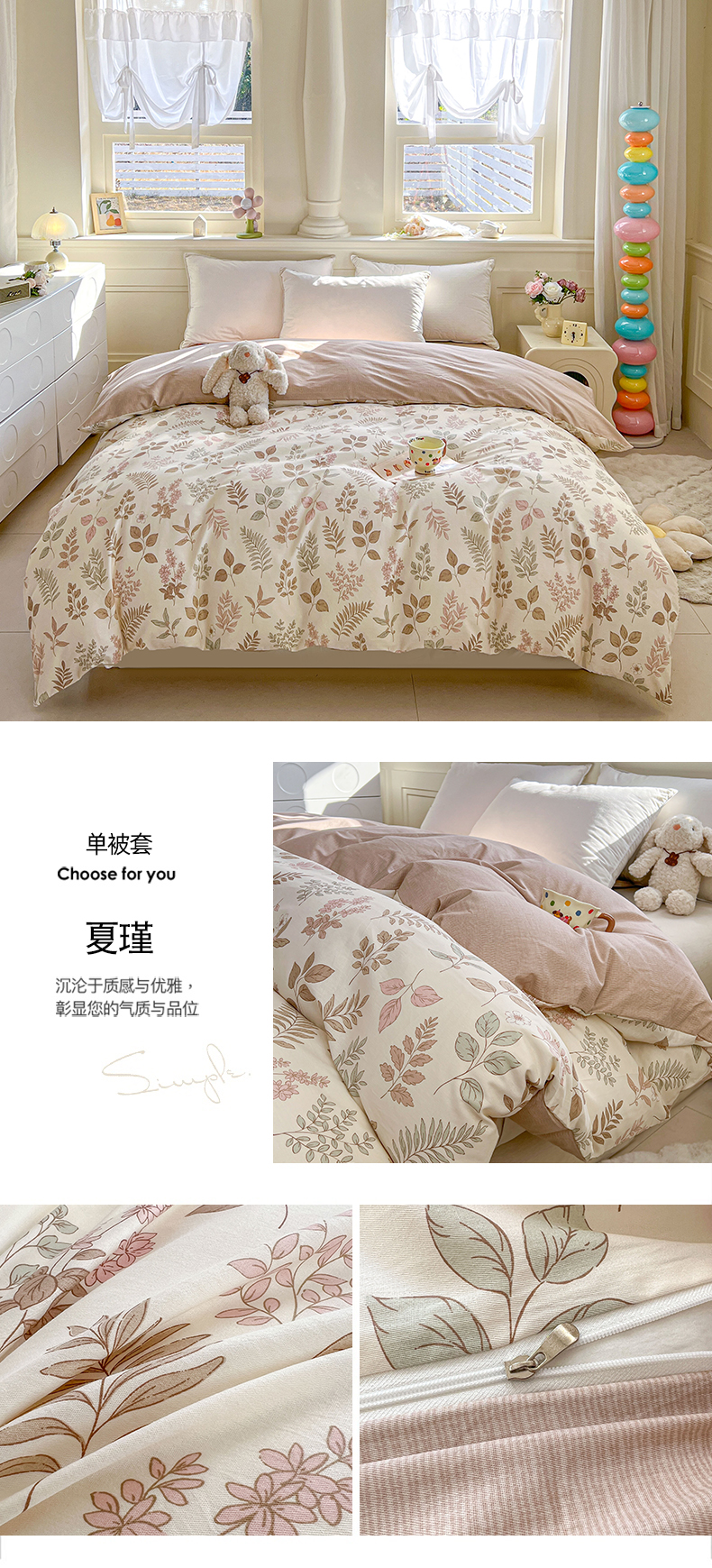 • 91家纺网 家纺一手货源 找家纺 名优家纺 2026新款12868全棉小清新印花四件套单品系列-单被套 西西莉亚