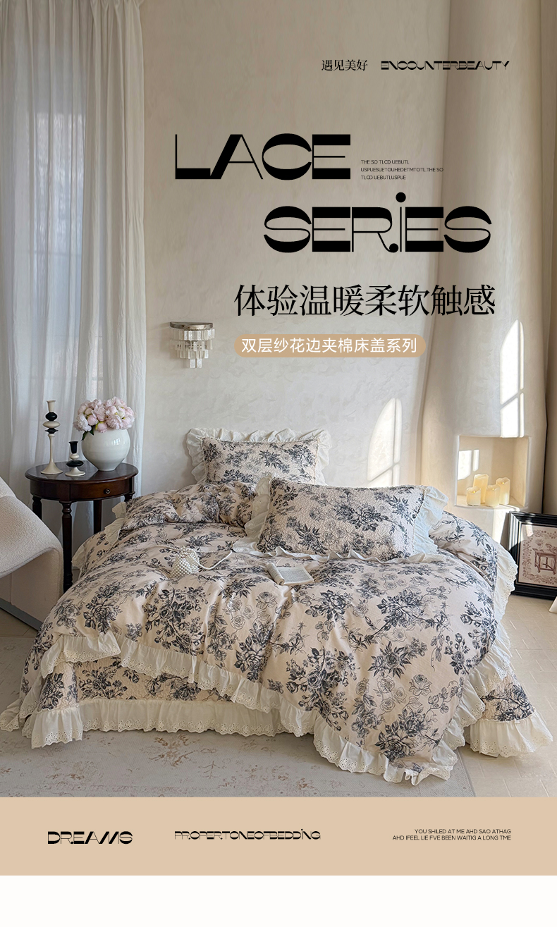 (总)琳可家居 2026新款60S长绒棉花边床盖A类双面全棉高温水洗-蝶恋系列,蝶恋-暖白,蝶恋-卡其,蝶恋-雾粉,组合