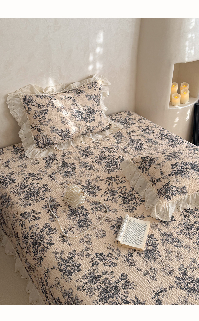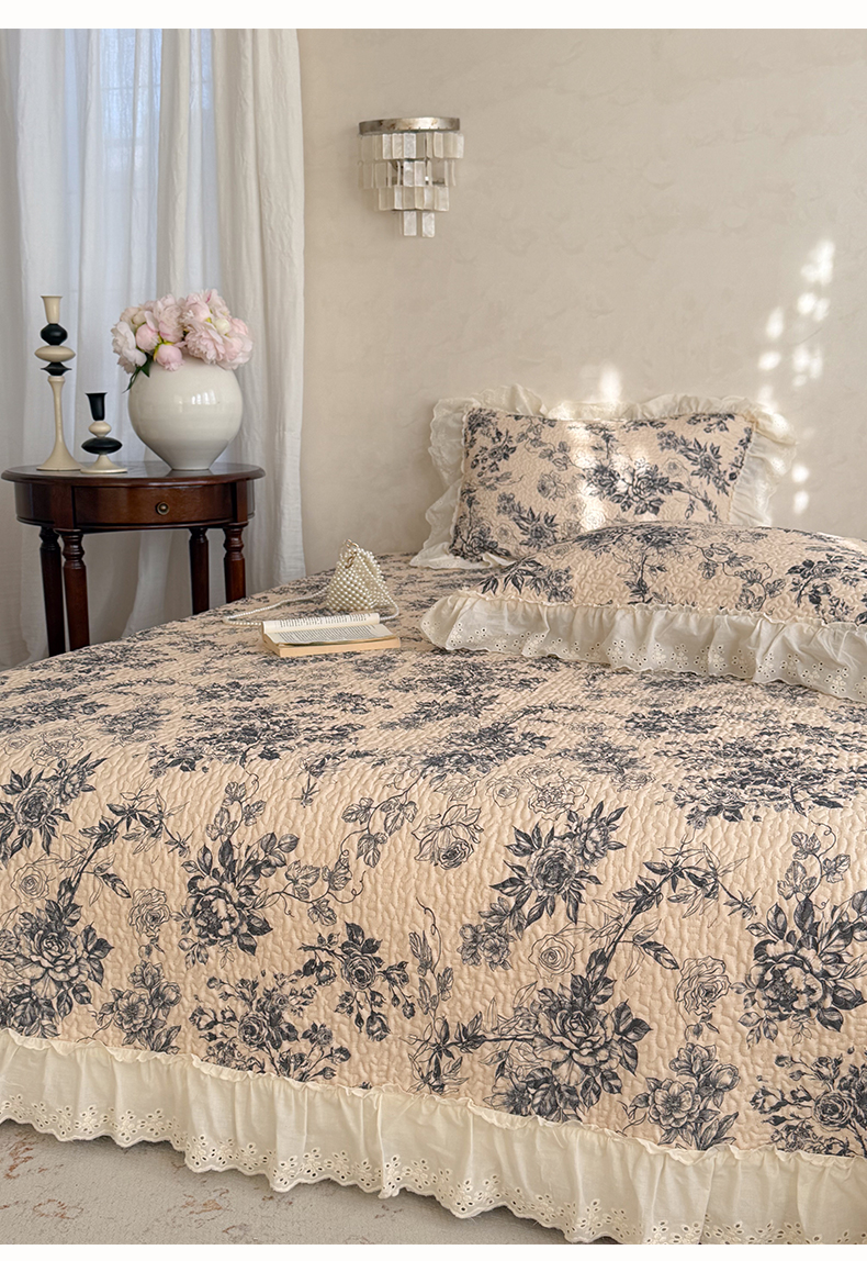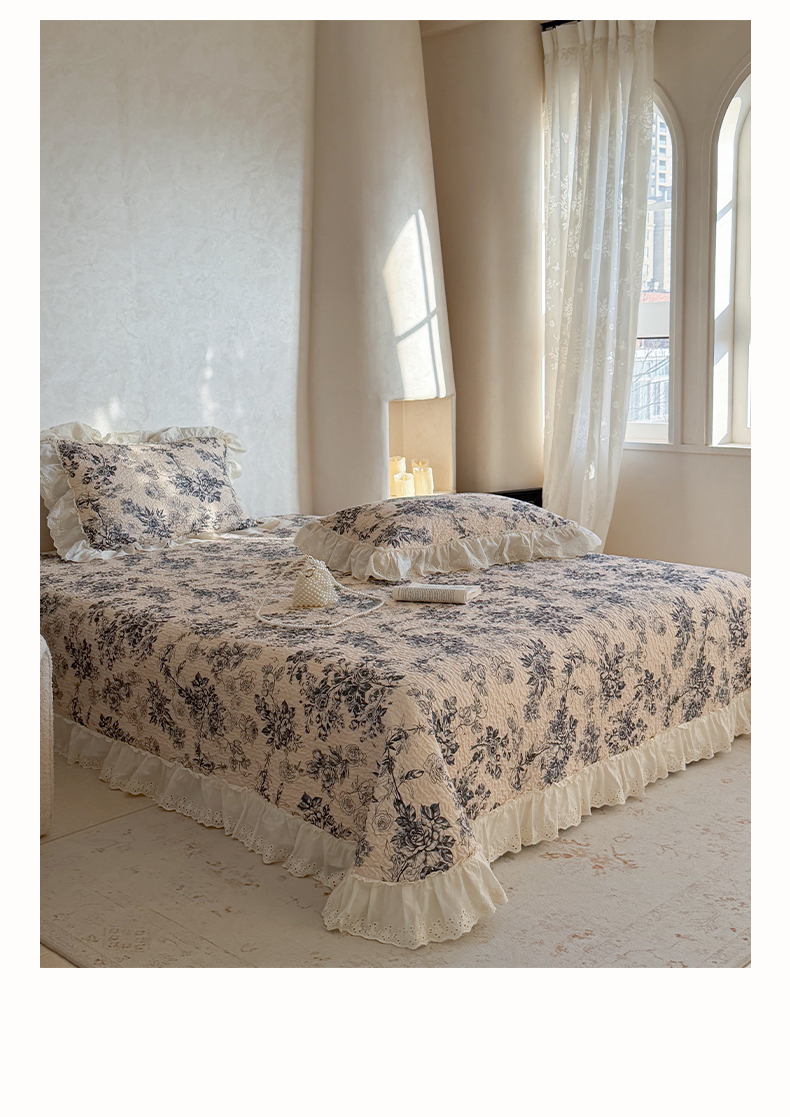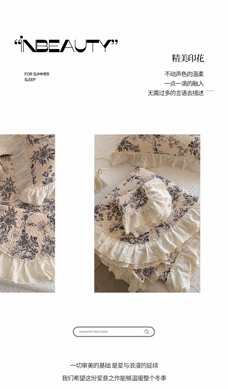 琳可家居 2026新款印花全棉双层纱床盖棉布花边高温水洗A类标准夹棉可机洗 玫瑰故事