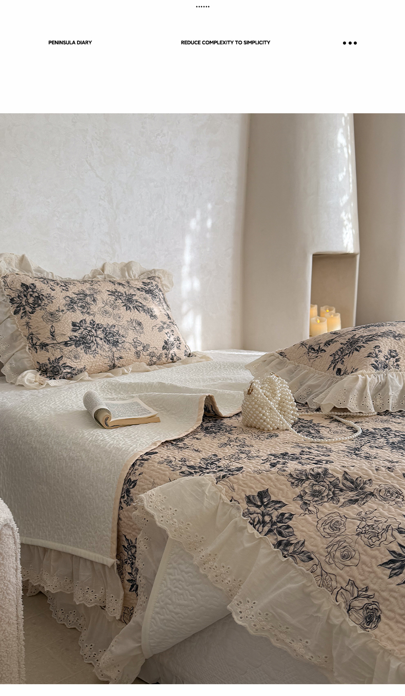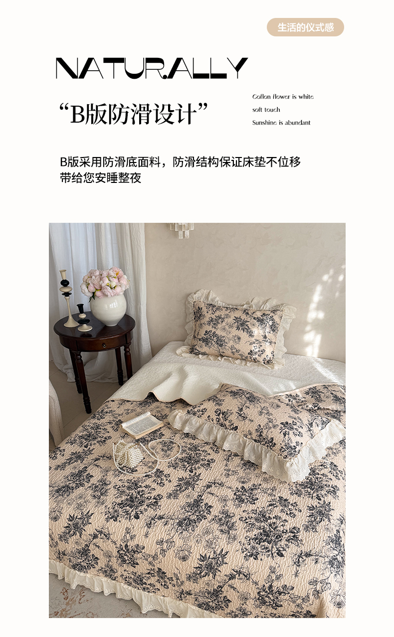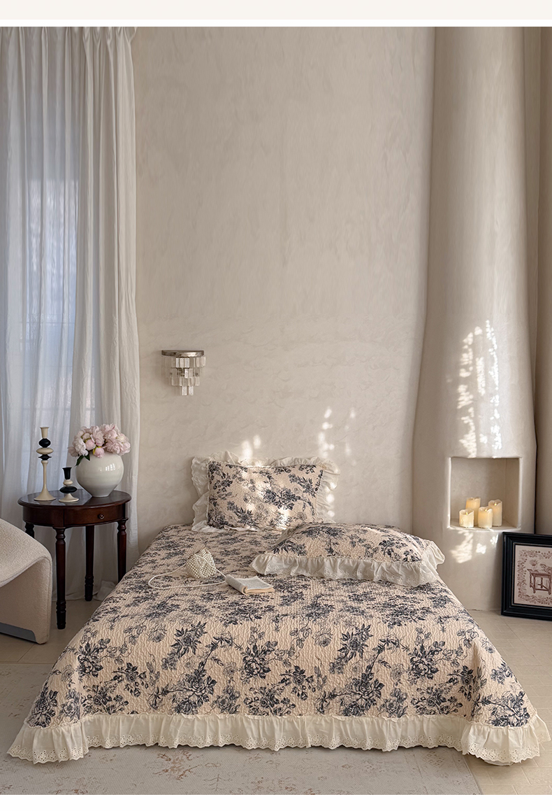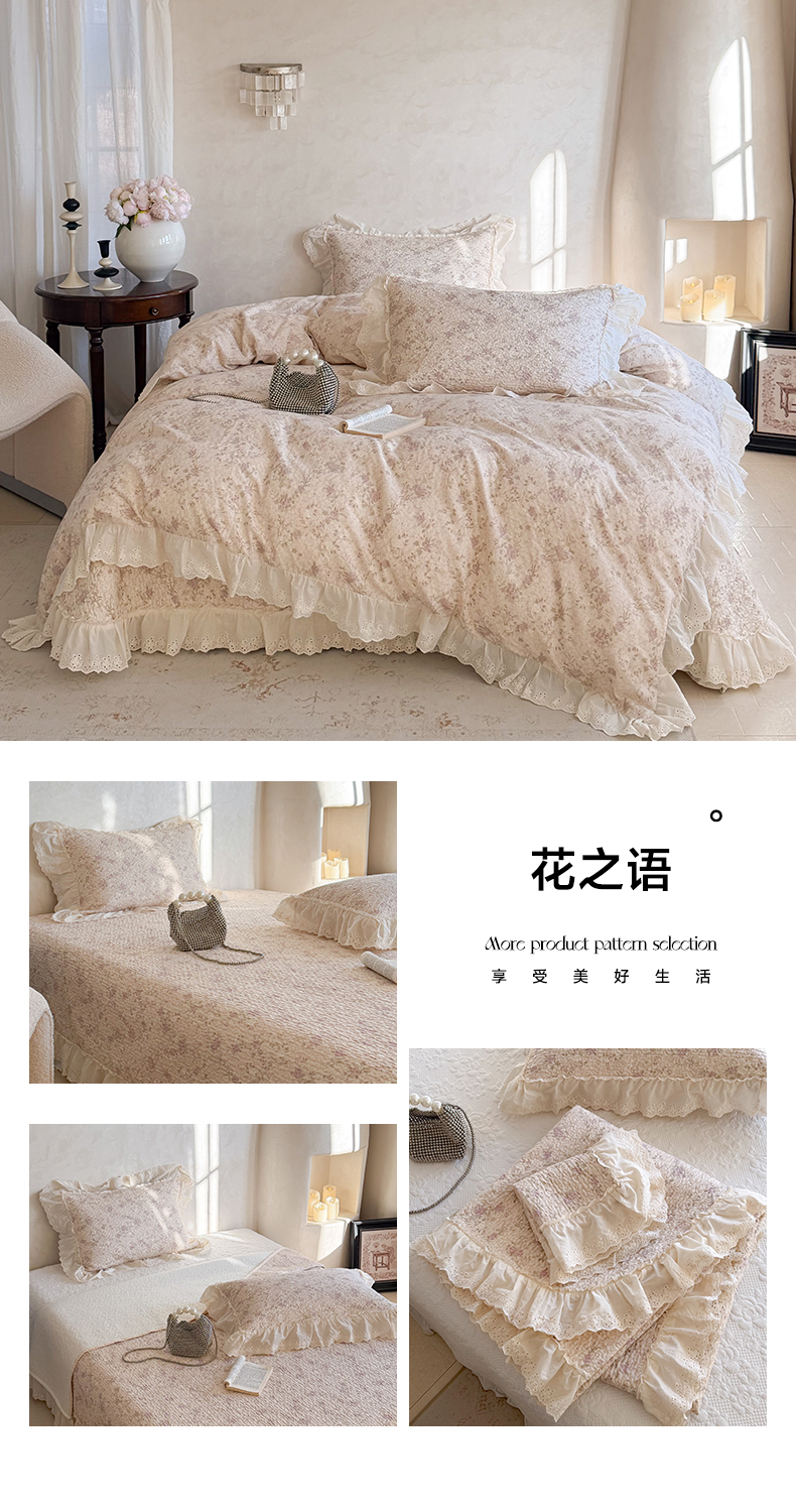 琳可家居 2026新款印花全棉双层纱床盖棉布花边高温水洗A类标准夹棉可机洗 玫瑰故事