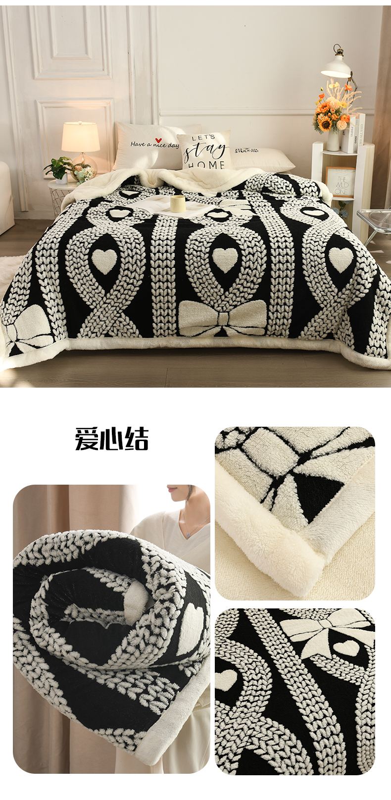 (总)恋绒家纺 2025新款阳离子三层舒棉绒毛毯毯子,爱心结,斑马纹,复古花枝,蕉叶白,蕉叶绿,幕朵,优雅咖,郁金香