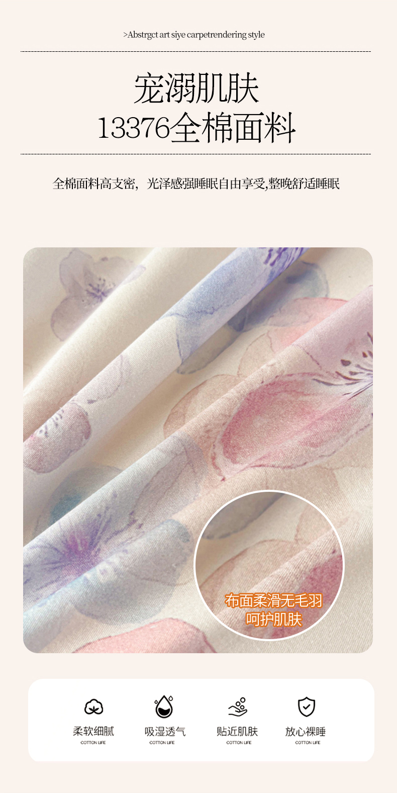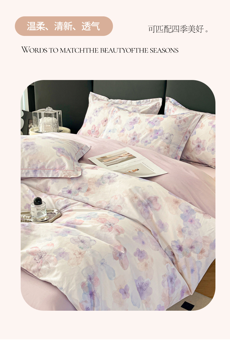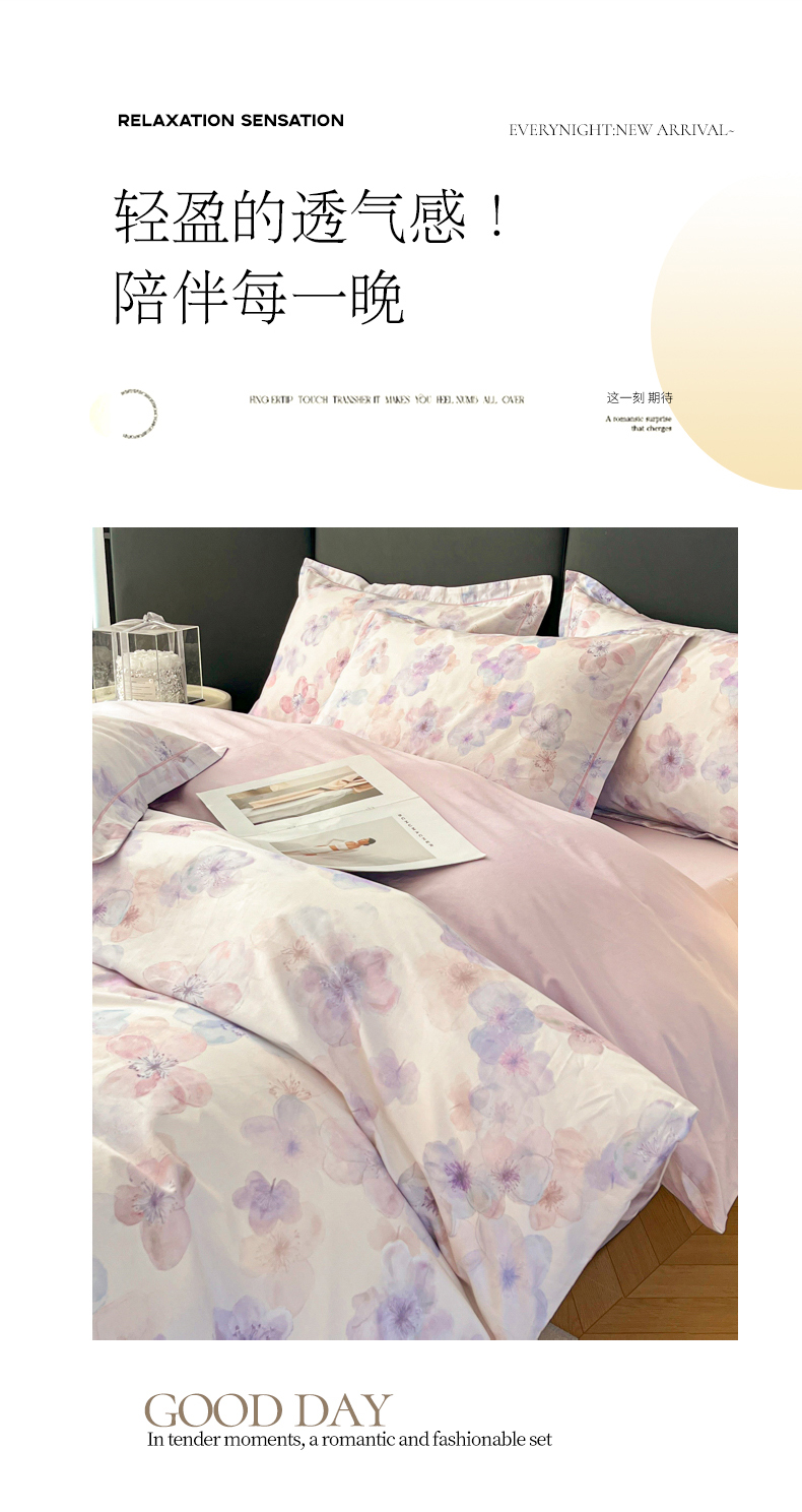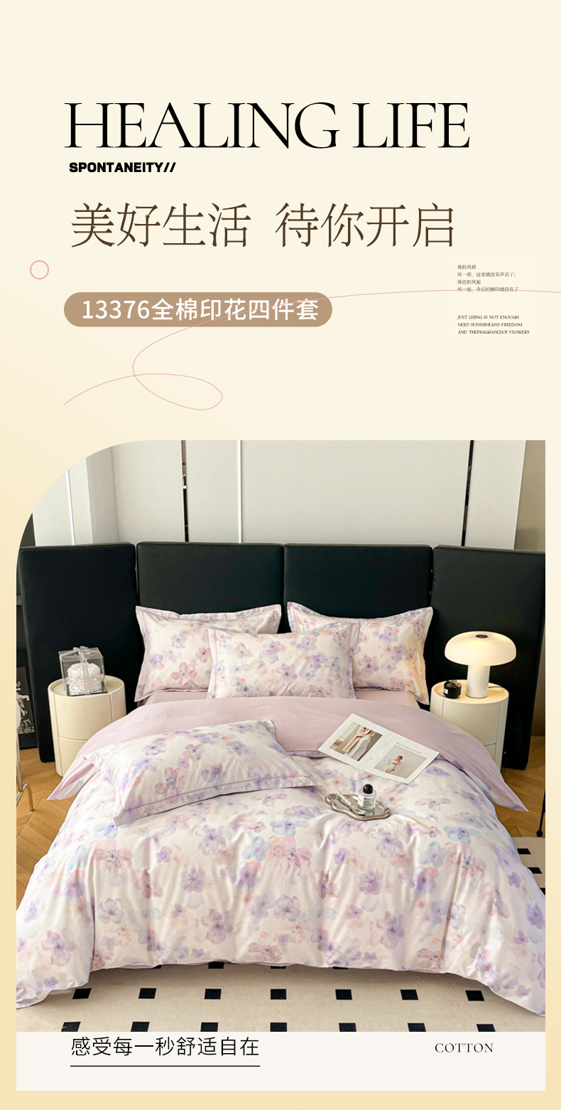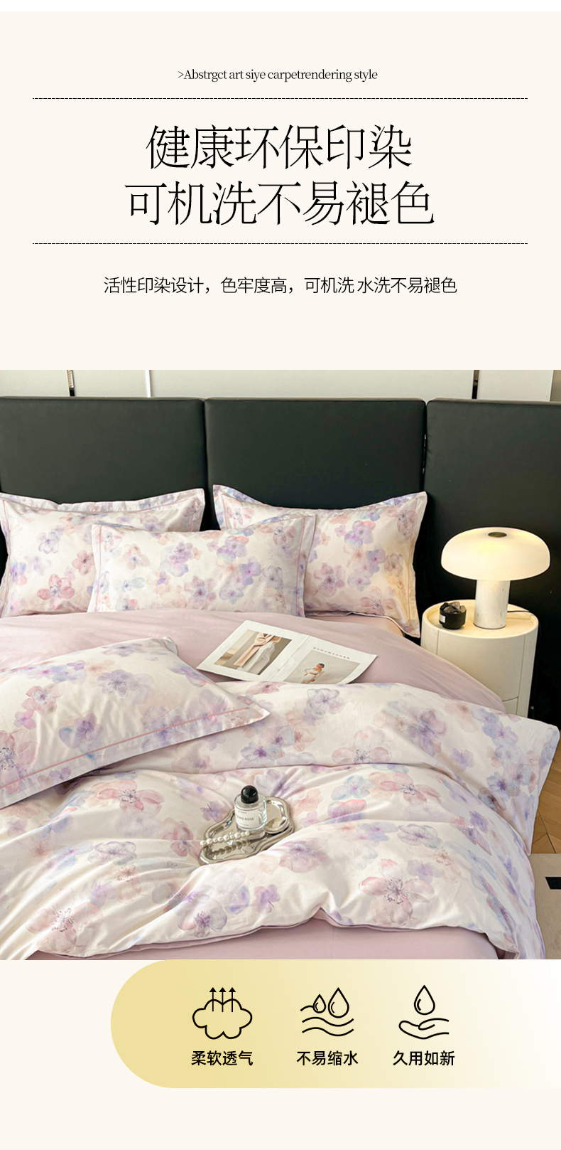 当前位置: 91家纺网 > 商品网购 > 床品套件 > 四件套 > 全棉普通四件套 > 艾迪尚家纺 2026新款133X76宽幅全棉纯棉印花四件套(有单品 可定制) 若芙-兰