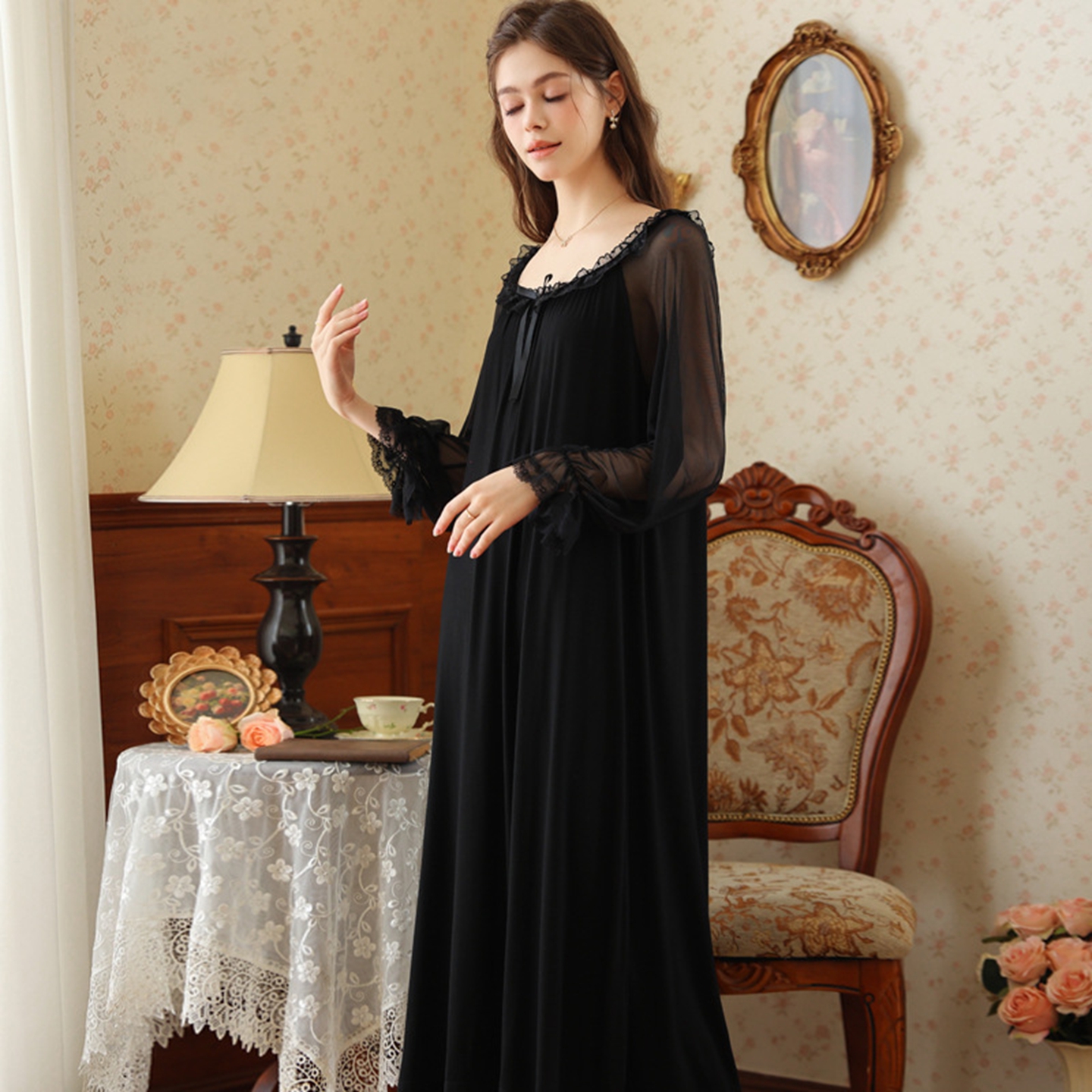 商品名称:洛兰沙家居馆 2026新款宫廷风甜美公主法式复古宽松圆领女春秋针织棉长袖睡衣睡裙 蓝色