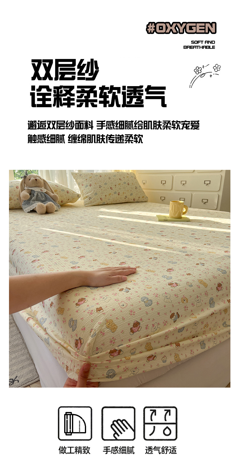 沐芷 2026 【提供买家秀】双层纱A类床笠单件/床笠三件套 床笠款床罩床垫保护套罩 狗狗派对