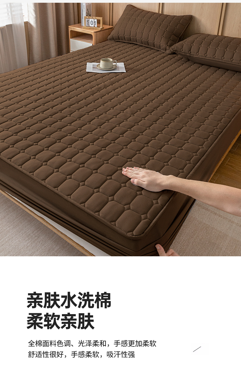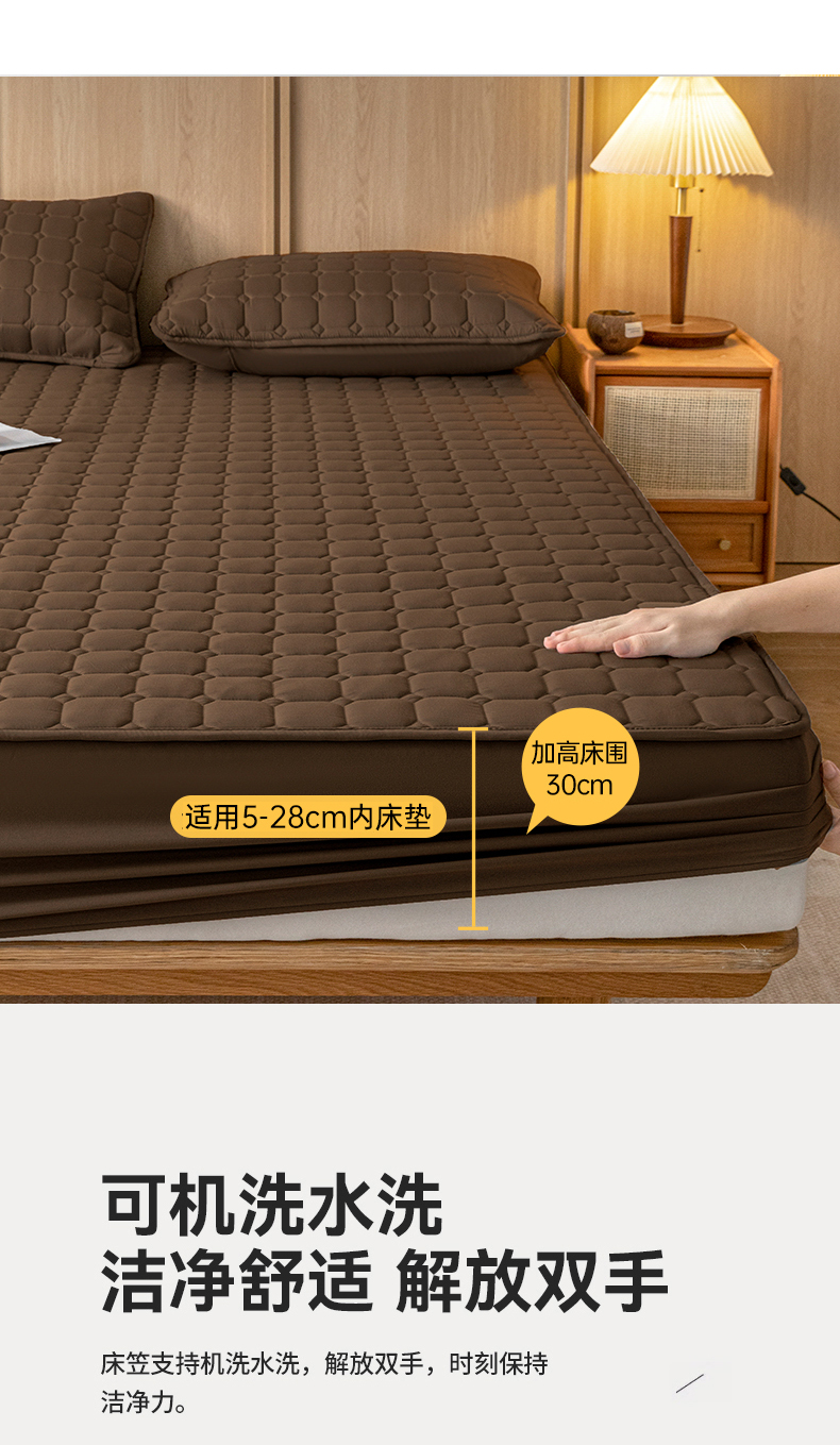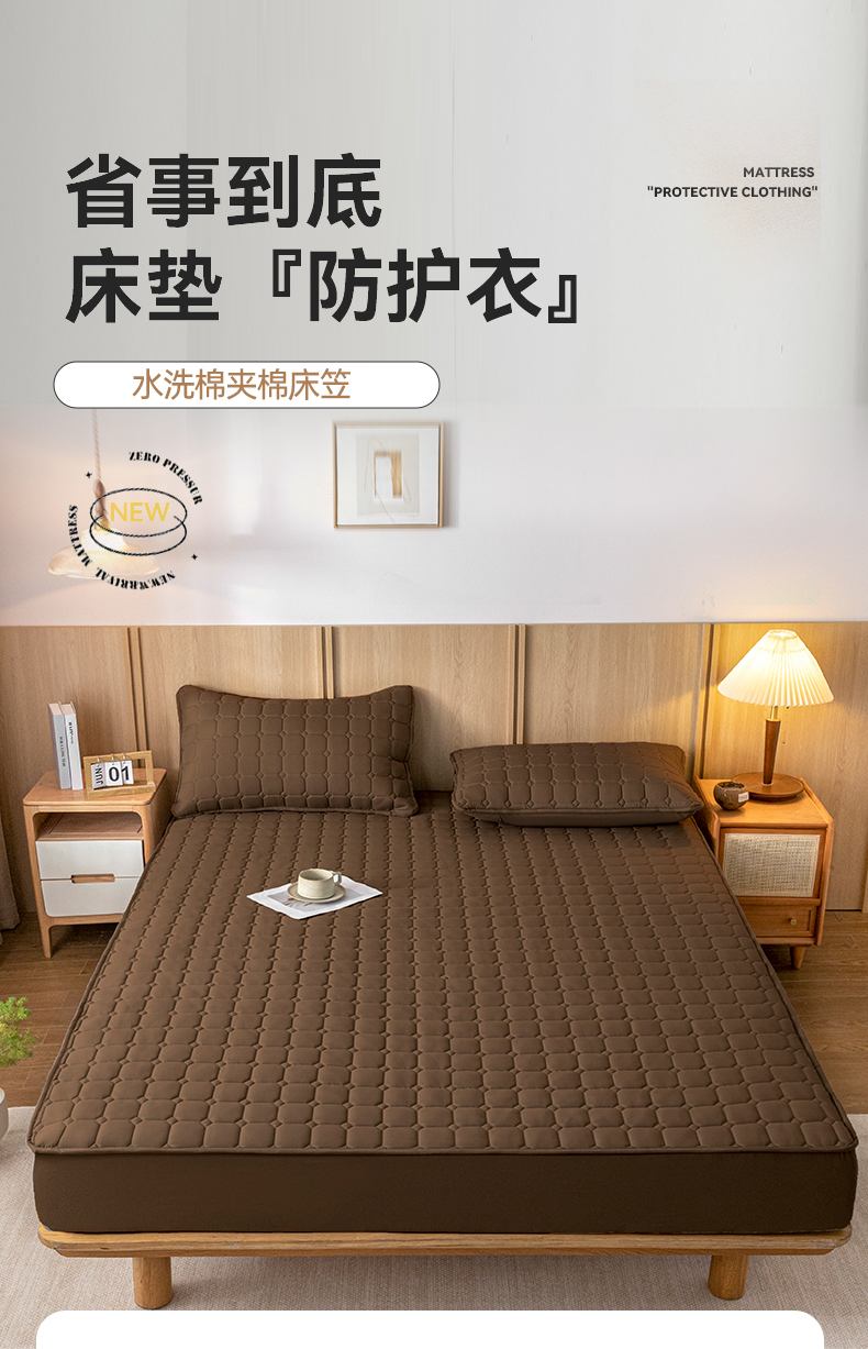 • 91家纺网 家纺一手货源 找家纺 宇淳 2026跨境外贸水洗棉夹棉单件床签床垫保护套四季通用防滑床罩梦思床垫保护罩三件套非全棉 棕色