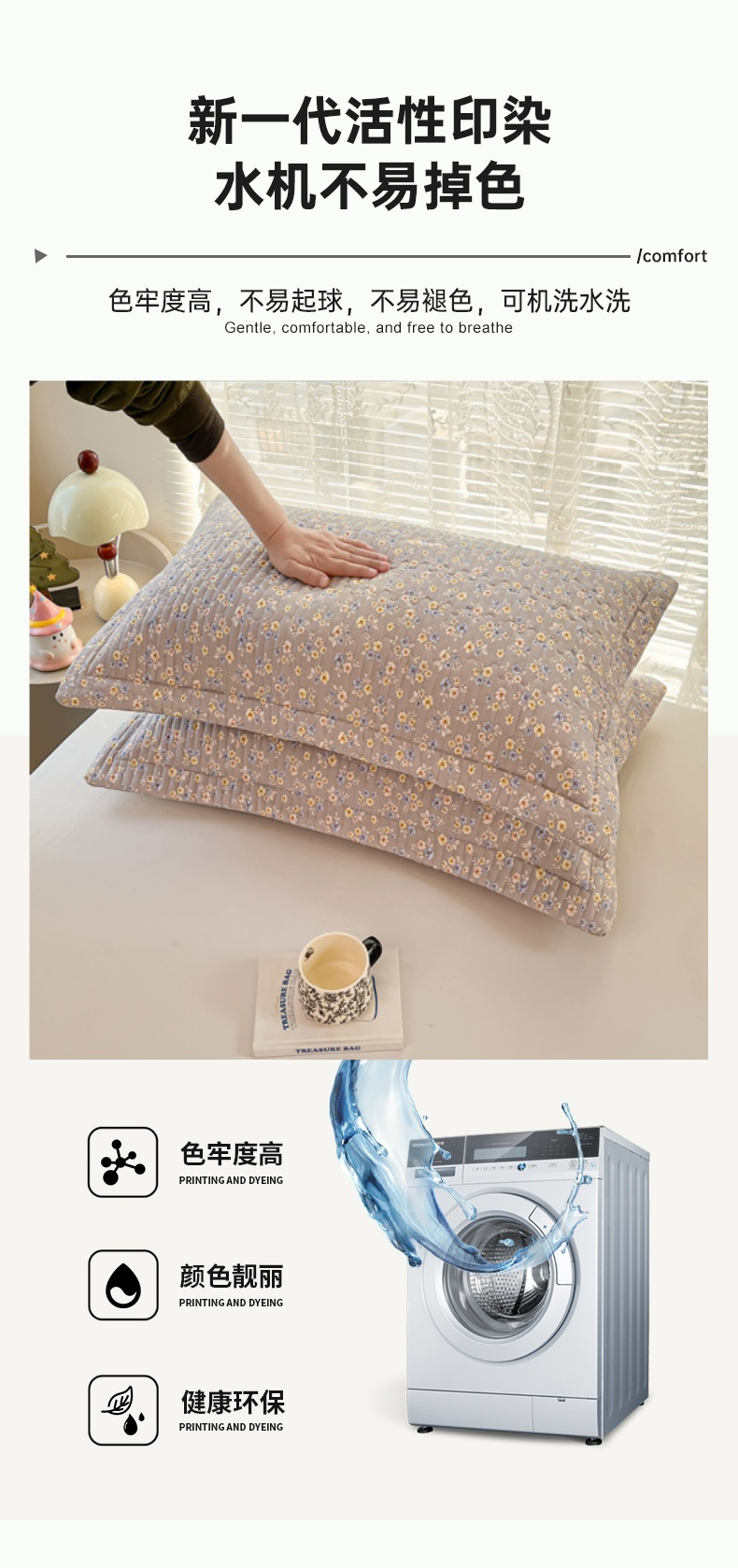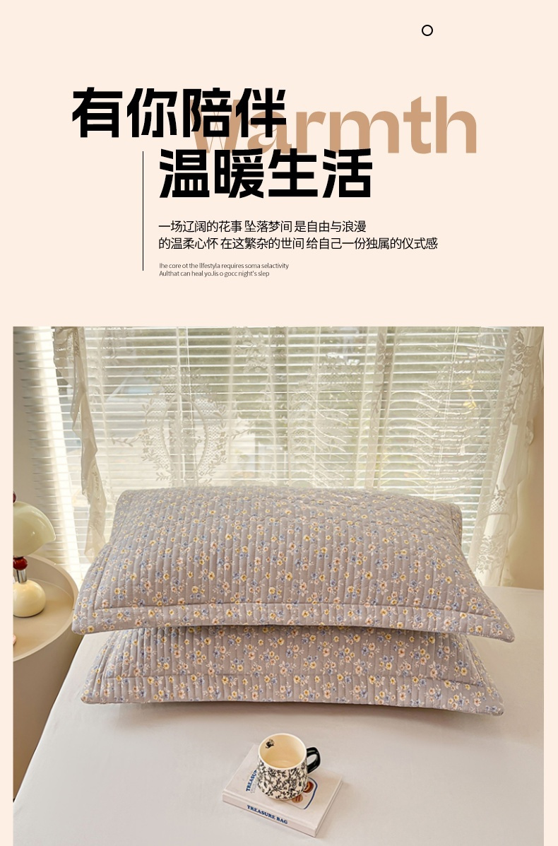 • 91家纺网 家纺一手货源 找家纺 圣比熊 2025新款A类云朵棉夹棉枕套宿舍单人一只装枕芯内胆套-单人枕套 花无归期(压线夹棉)