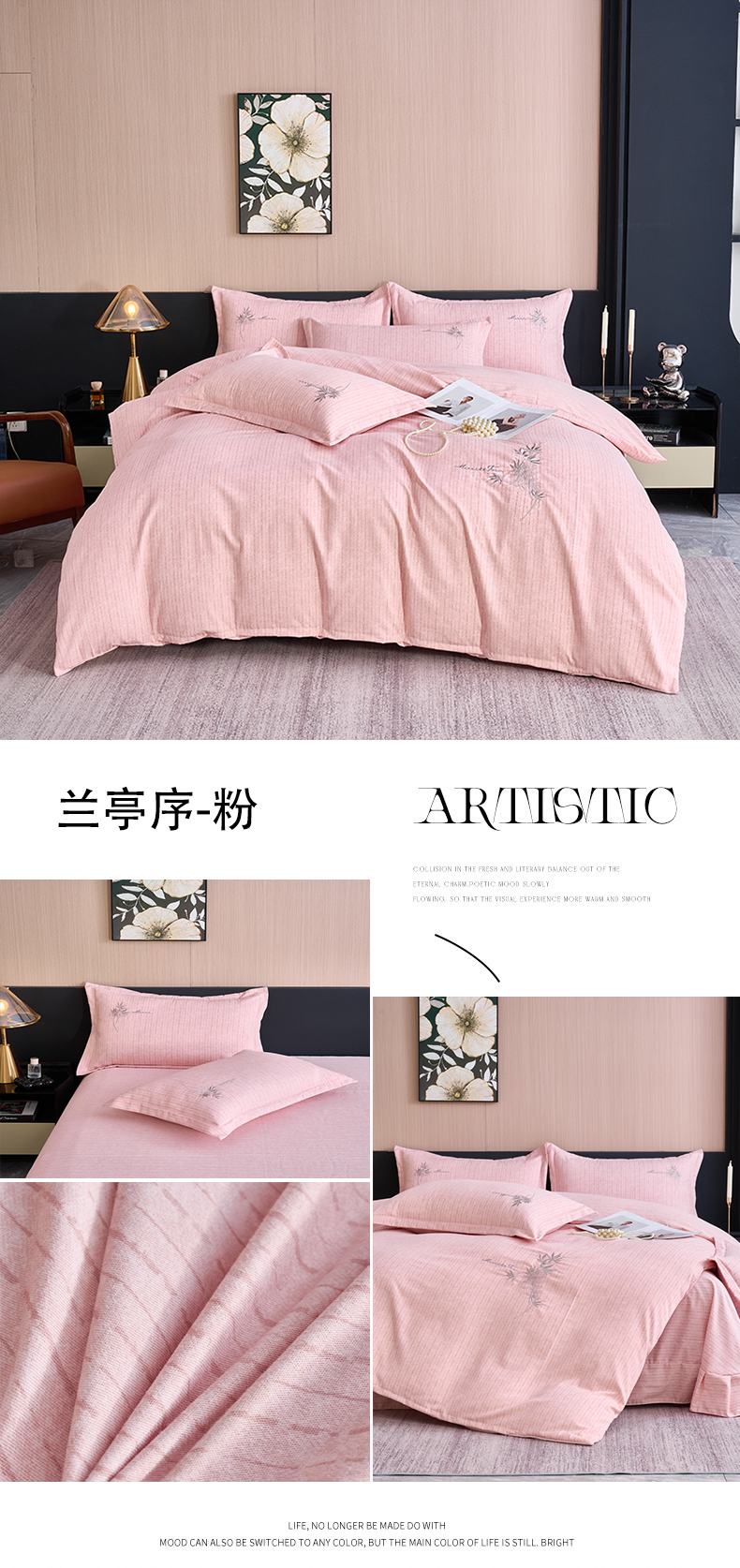 (总)喜四方 2026年新款加厚全棉印花加绣花四件套,兰亭序-粉,丛林记忆-粉,花样年华-绿,花样年华-粉,绅士格调-灰,绅士格调-绿,绅士格调-黄,绅士格调-粉,丛林记忆-灰紫,丛林记忆-卡其,丛林记忆-紫,兰亭序-浅绿,兰亭序-咖,兰亭序-灰