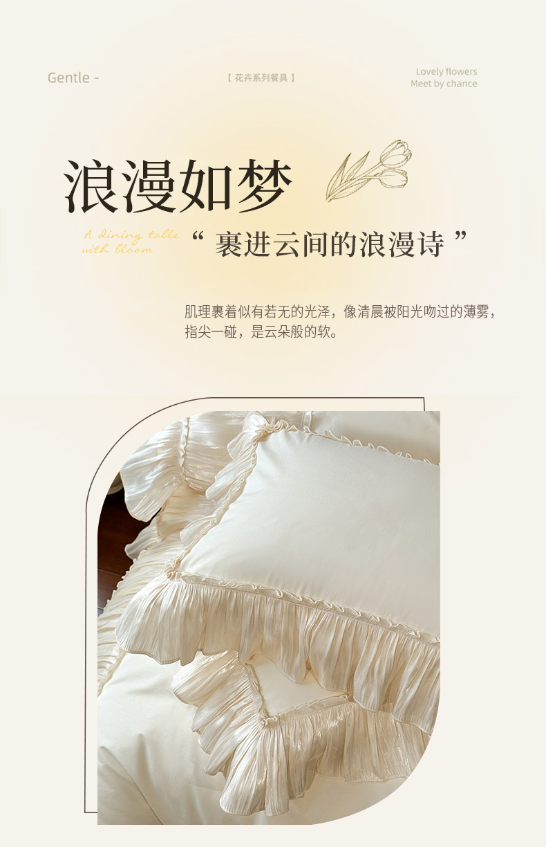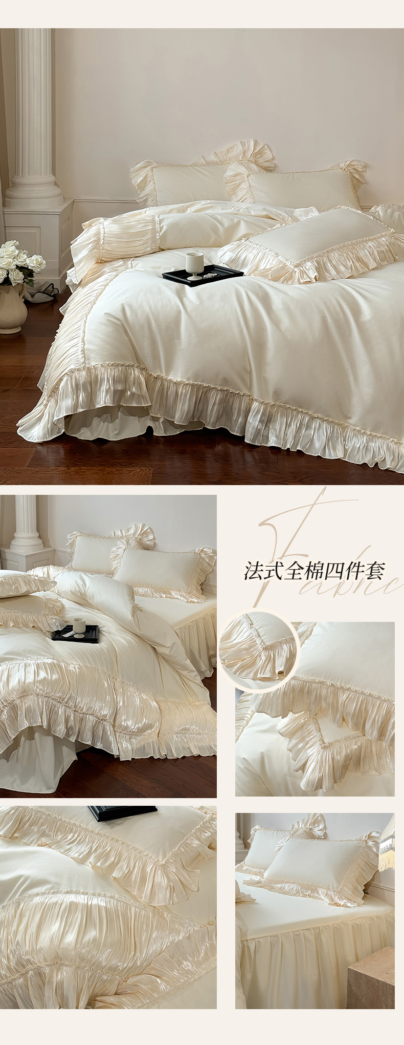 当前位置: 91家纺网 > 商品网购 > 床品套件 > 四件套 > 全棉普通四件套 > (总)亲亲公主 2026新款全棉法式花边款四件套-纯色茉莉