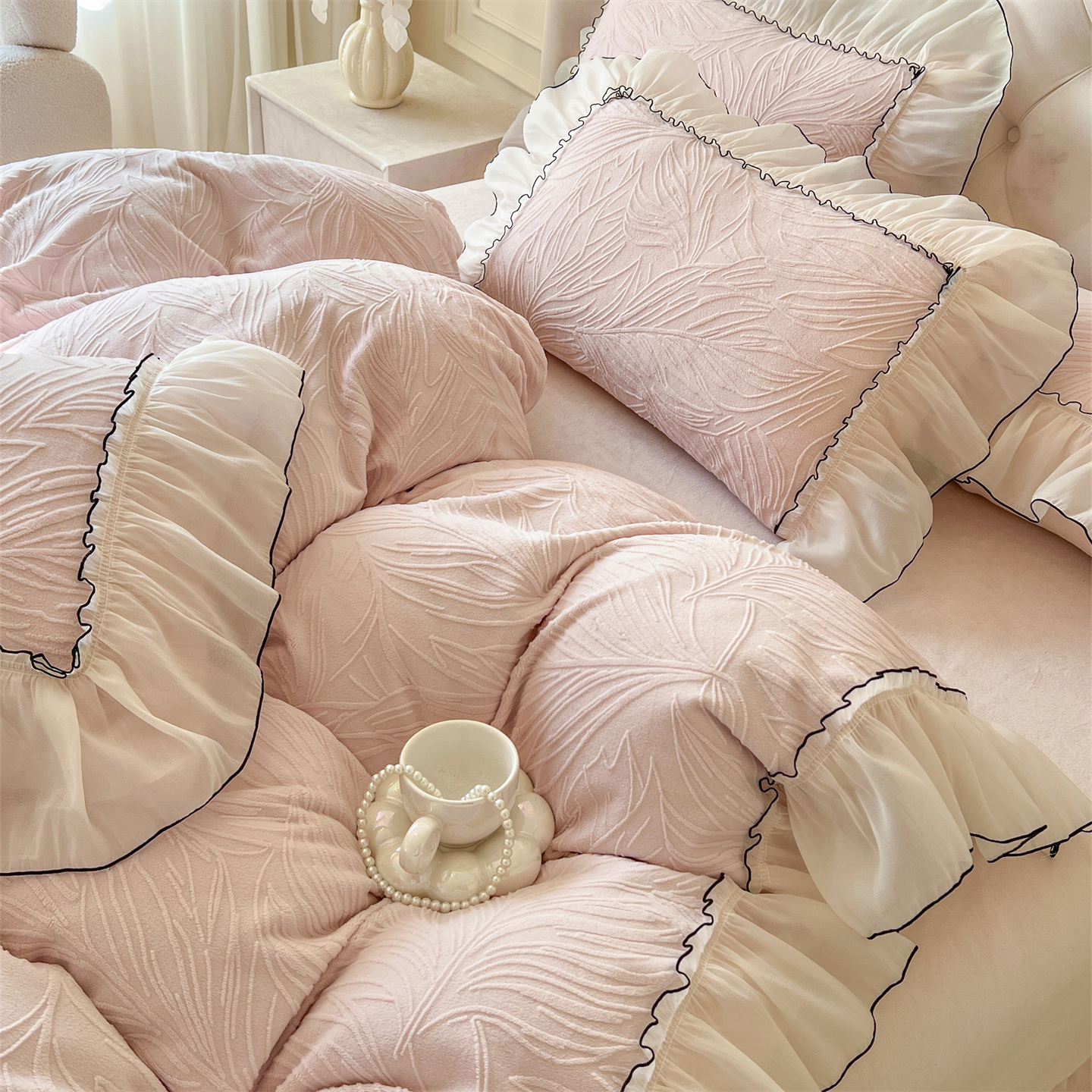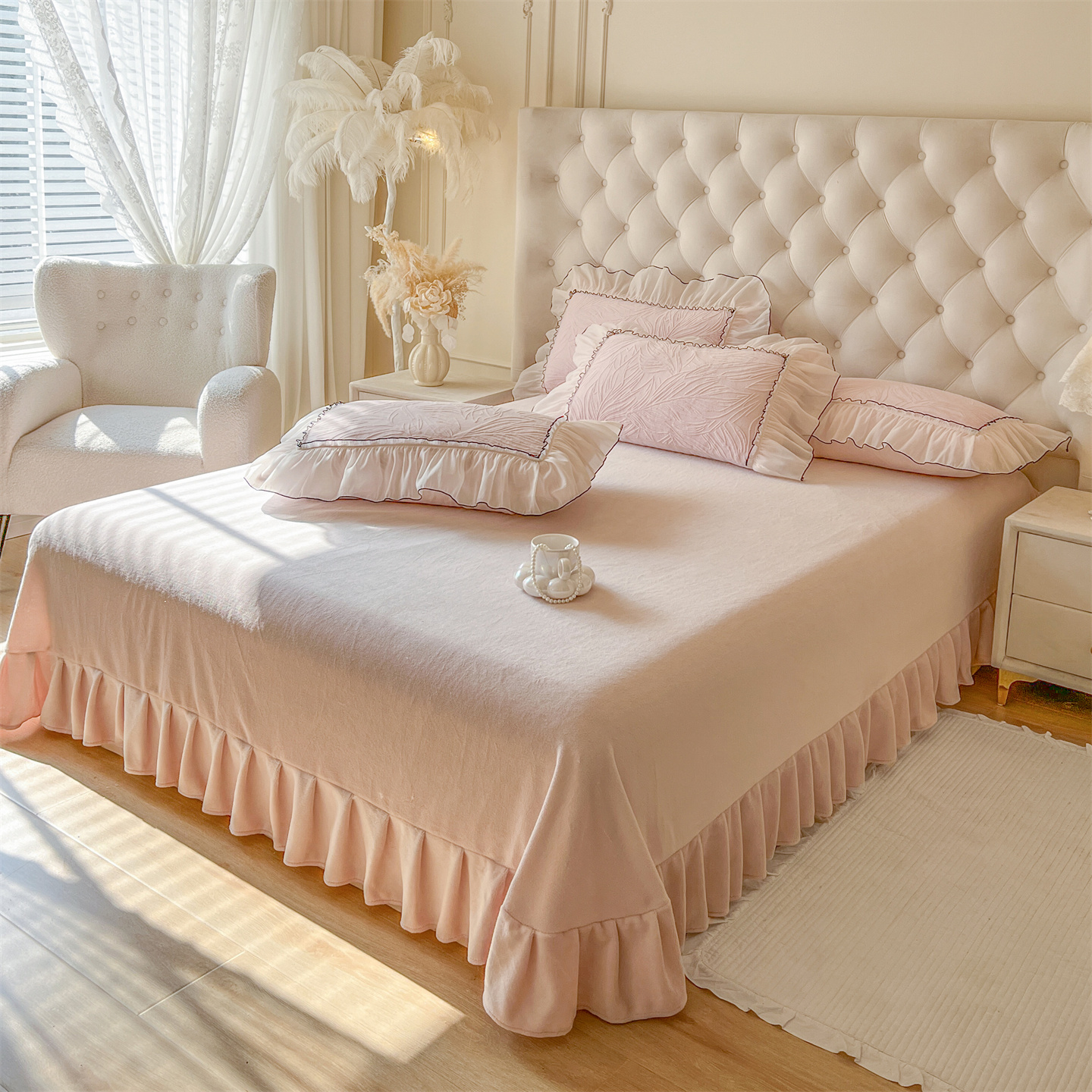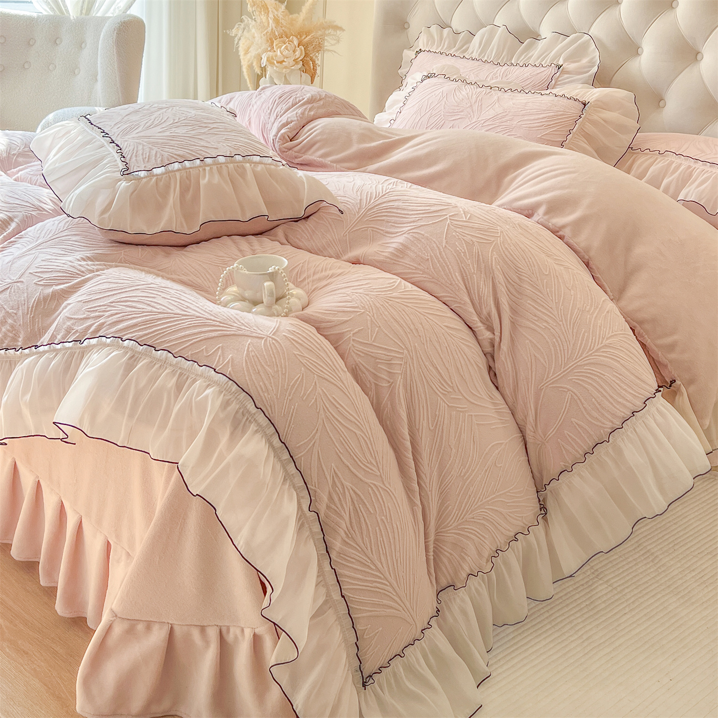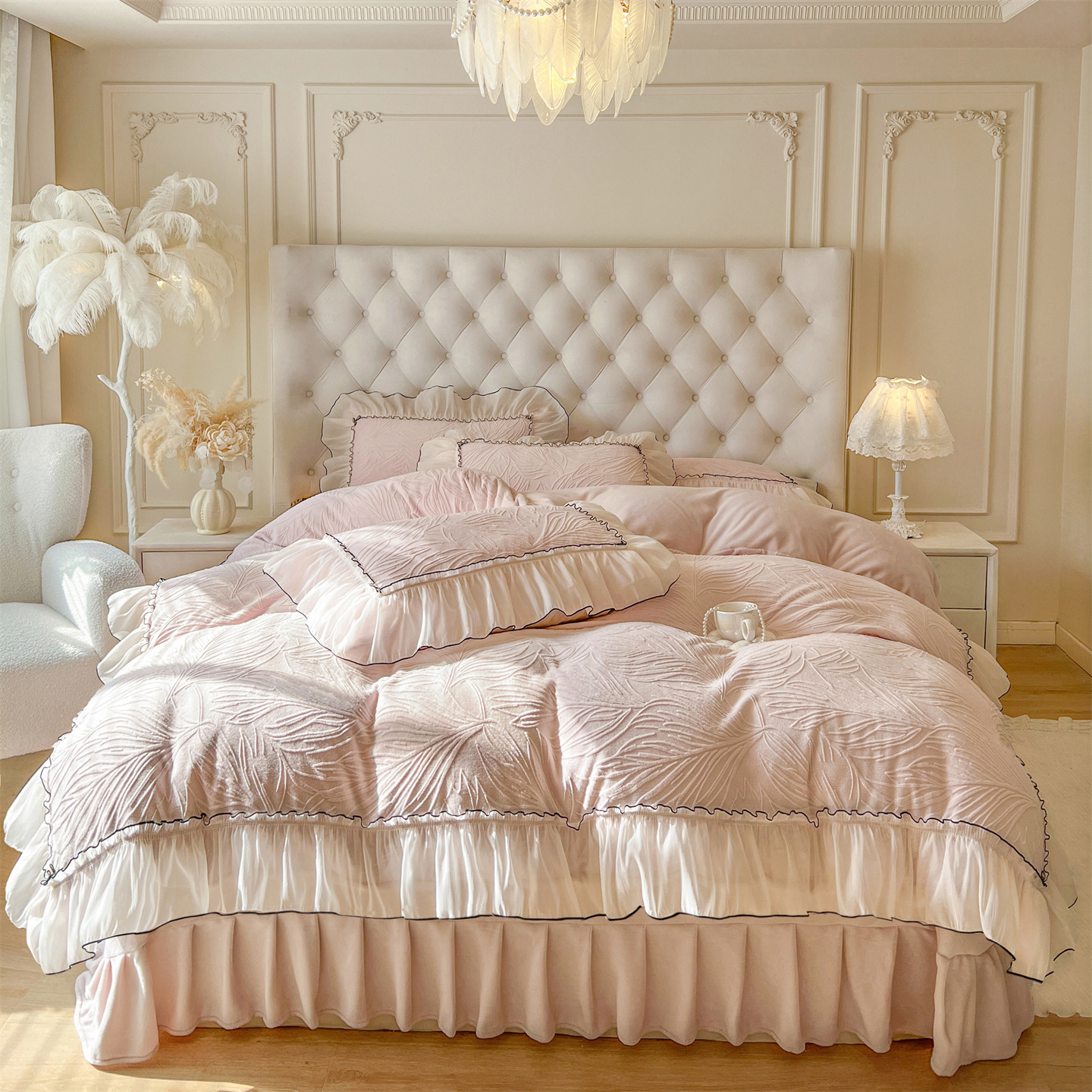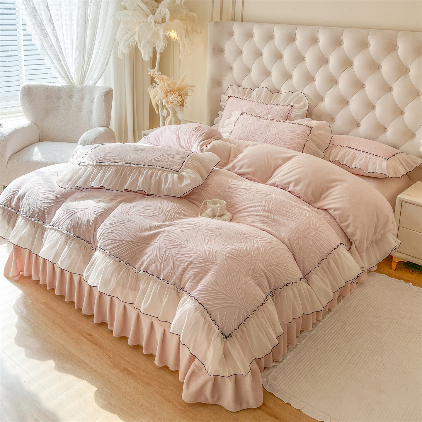 (总)满座家居 2025新款清新唯美木耳边加厚牛奶绒四件套雕花绒四件套,艾莎 粉,雏菊晨露 粉,田园风景 绿,蝶恋花 粉,邂逅,安妮 粉