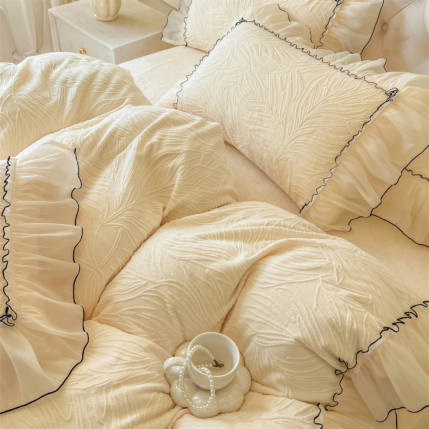 (总)满座家居 2025新款绵羊绒牛奶绒绣花小清新四件套,yummy,黑黑豆豆,派对乐园