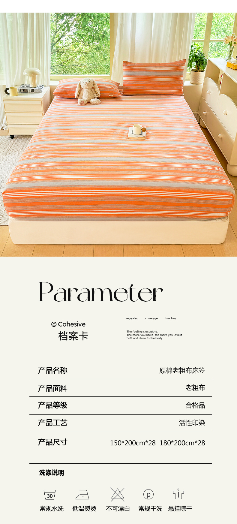 商品名称:(总)爱彼家纺 2026原棉加厚老粗布床笠凉感床罩可当凉席床笠三件套