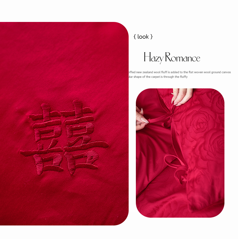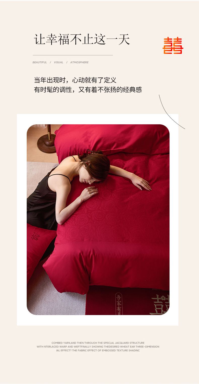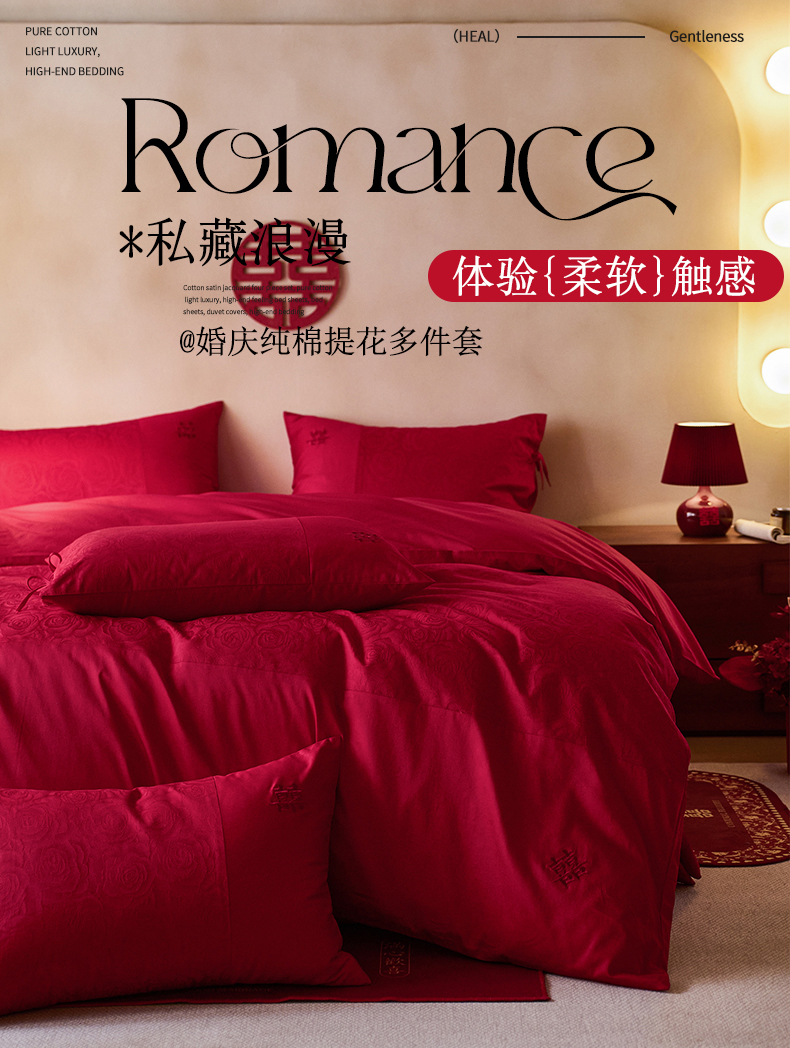 商品名称:宏羽纺家纺 2025新款小红书热卖款仿丝棉提花时尚婚庆系列四件套多件套 唯爱