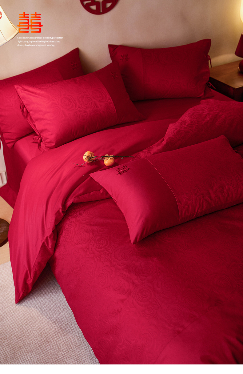 宏羽纺家纺 2025新款小红书热卖款仿丝棉提花时尚婚庆系列四件套多件套 唯爱