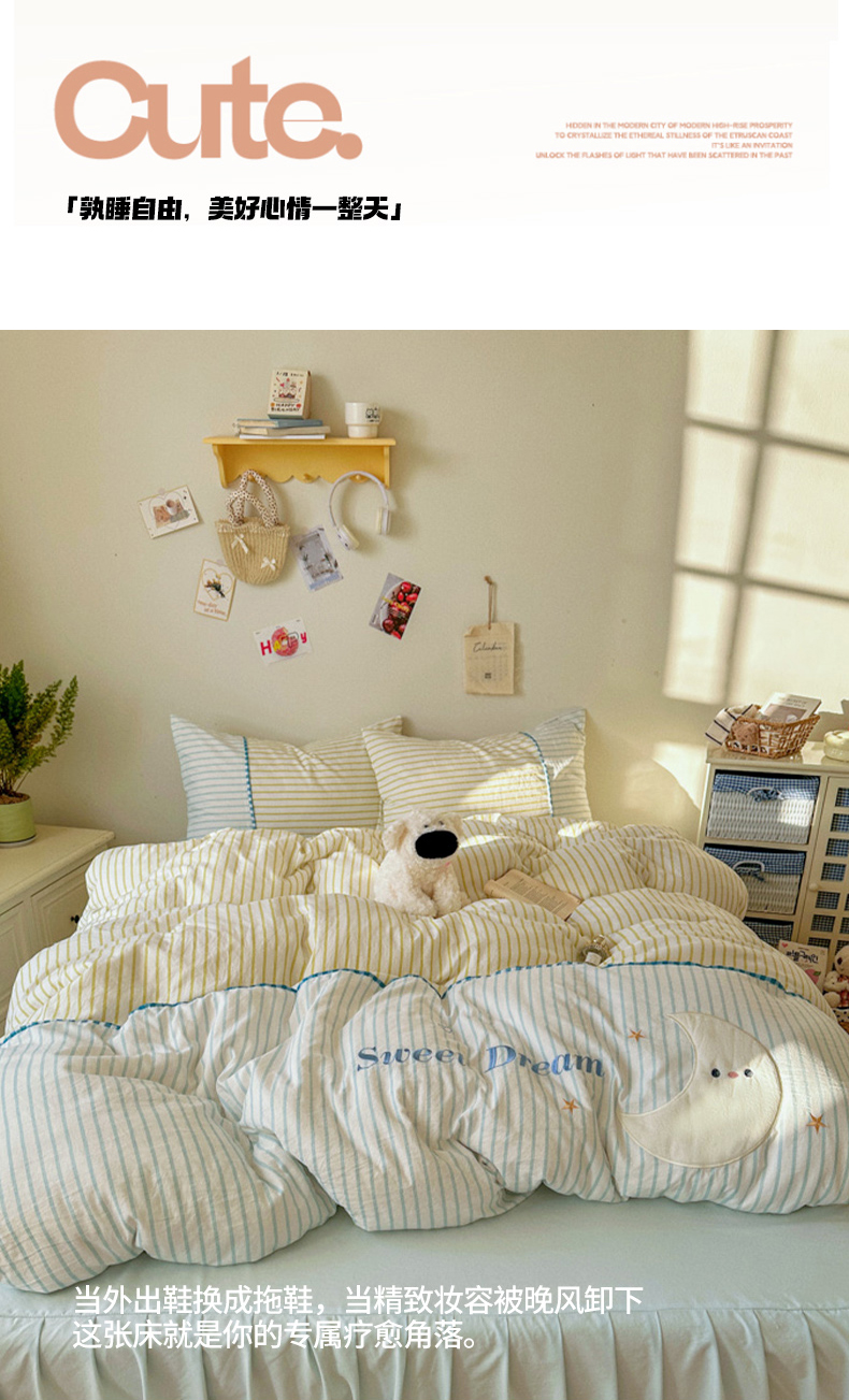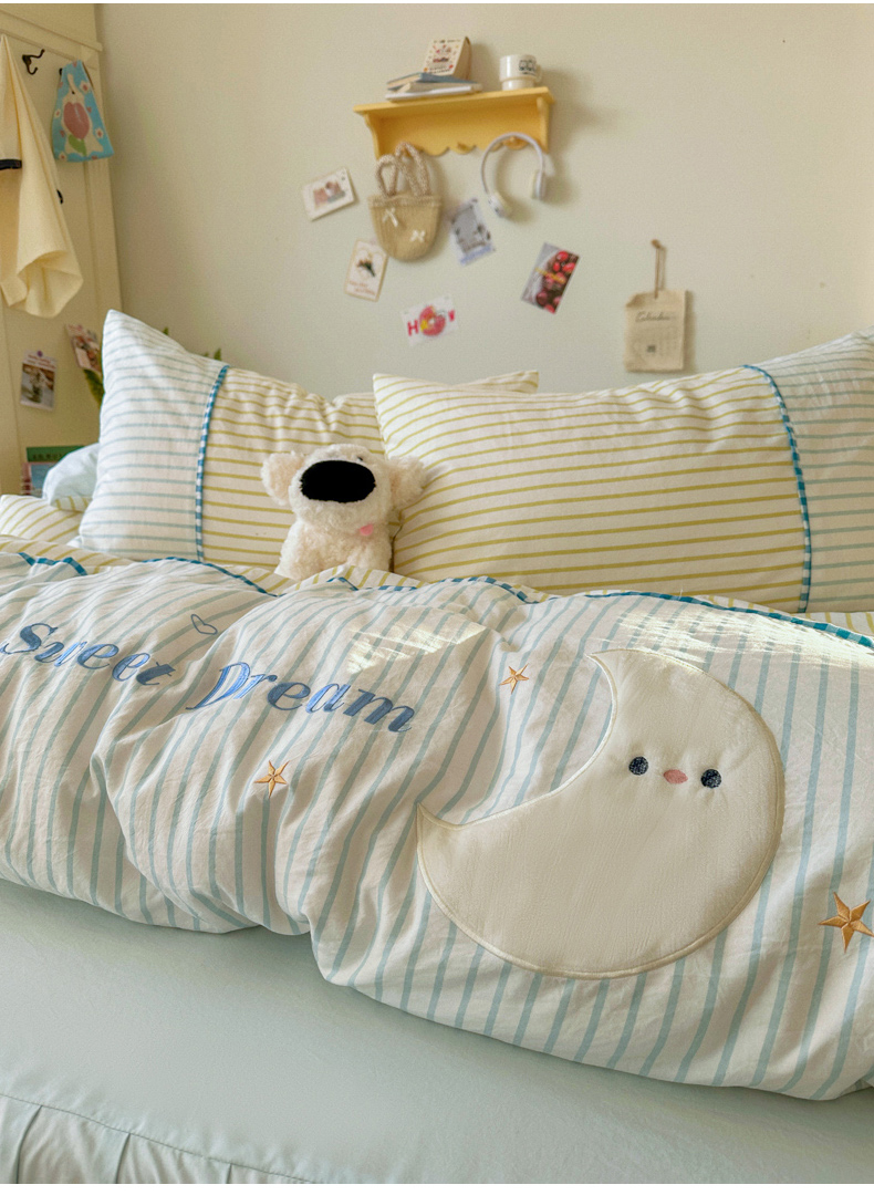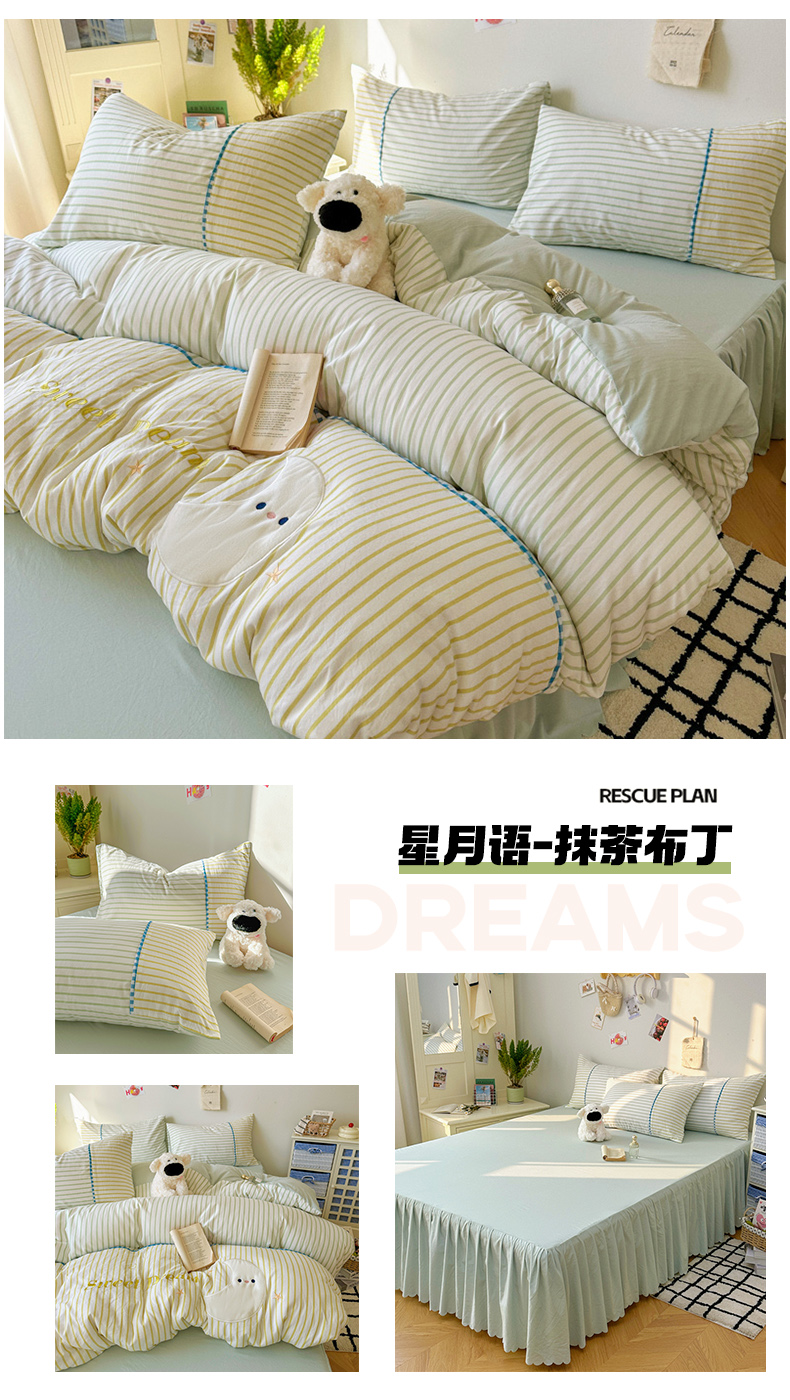 当前位置: 91家纺网 > 商品网购 > 床品套件 > 四件套 > 水洗棉四件套 > 贝凯瑞 2026款仿棉木棉水洗棉绣花ins小清新床裙床单款四件套-星月语 星月语-奶油晴川